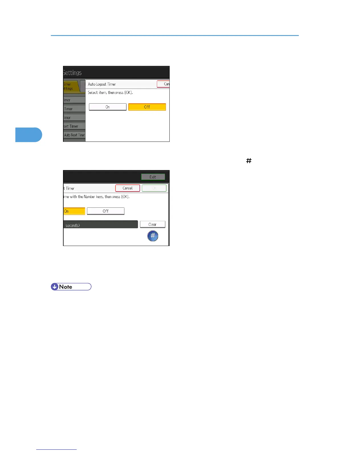 If you do not want to specify [Auto Logout Timer], select [Off].