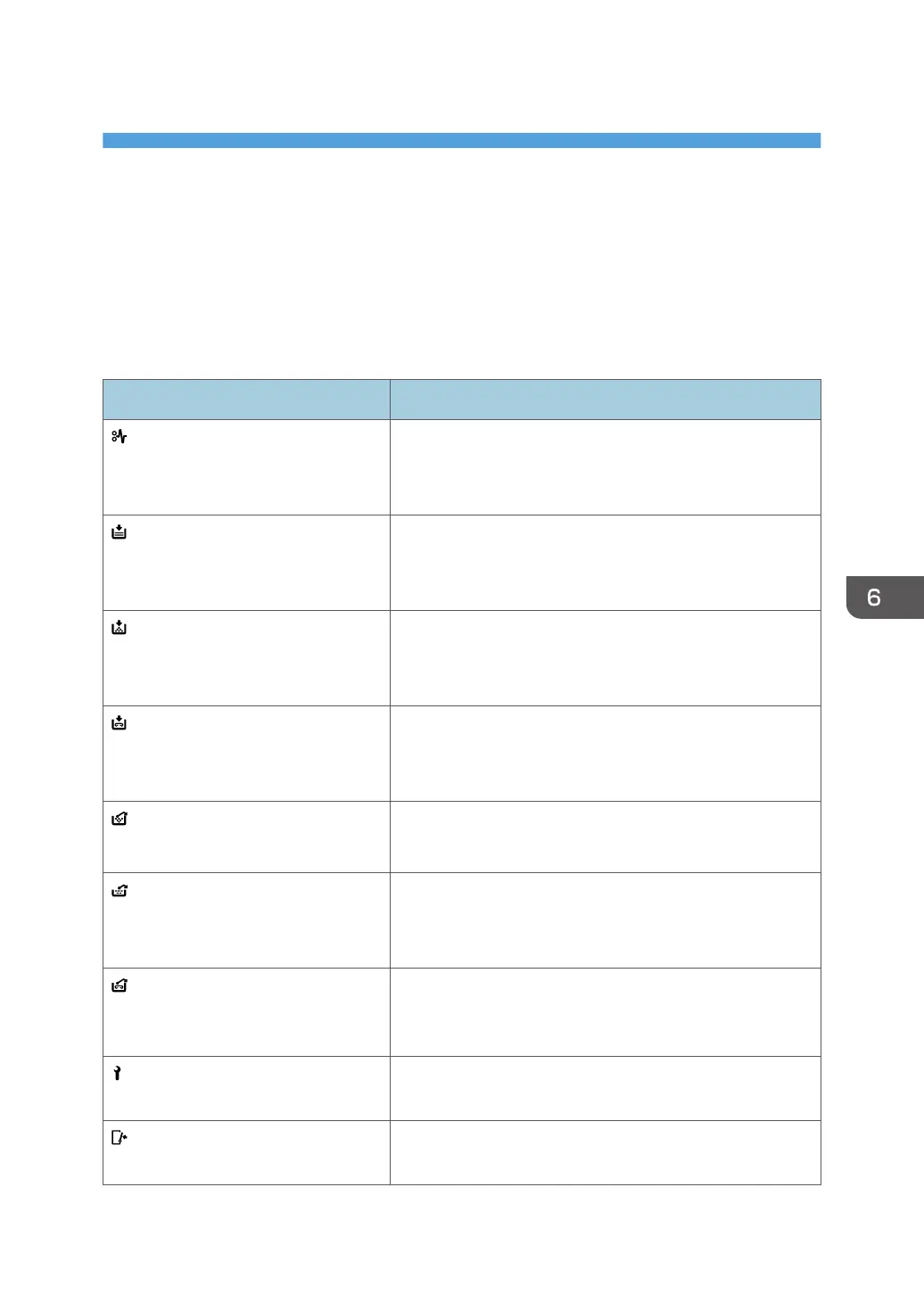 : Hole Punch Receptacle Full icon Appears when the hole punch receptacle is full.