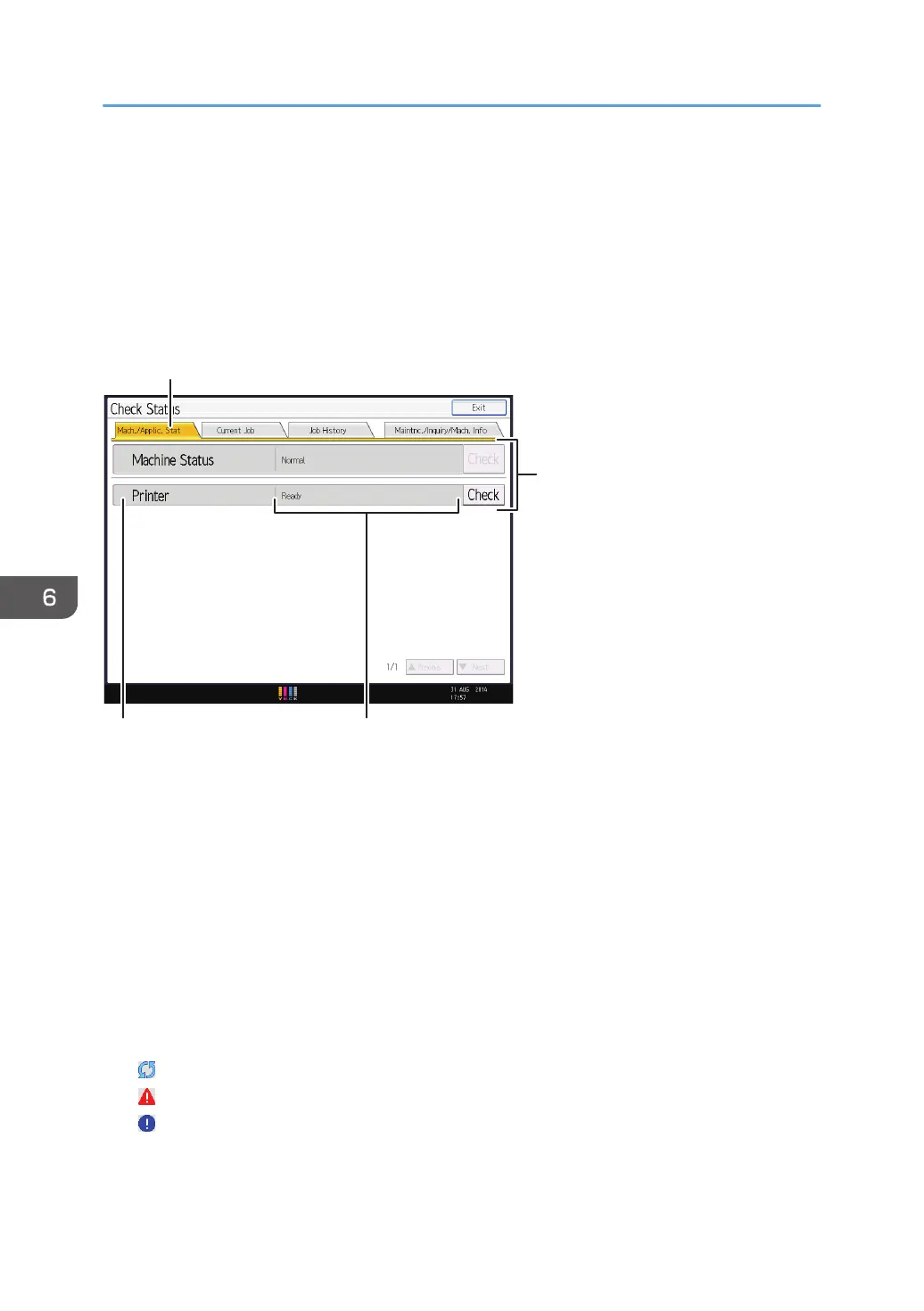 display the [Check Status] screen. Check the status of each function in the [Check Status] screen.