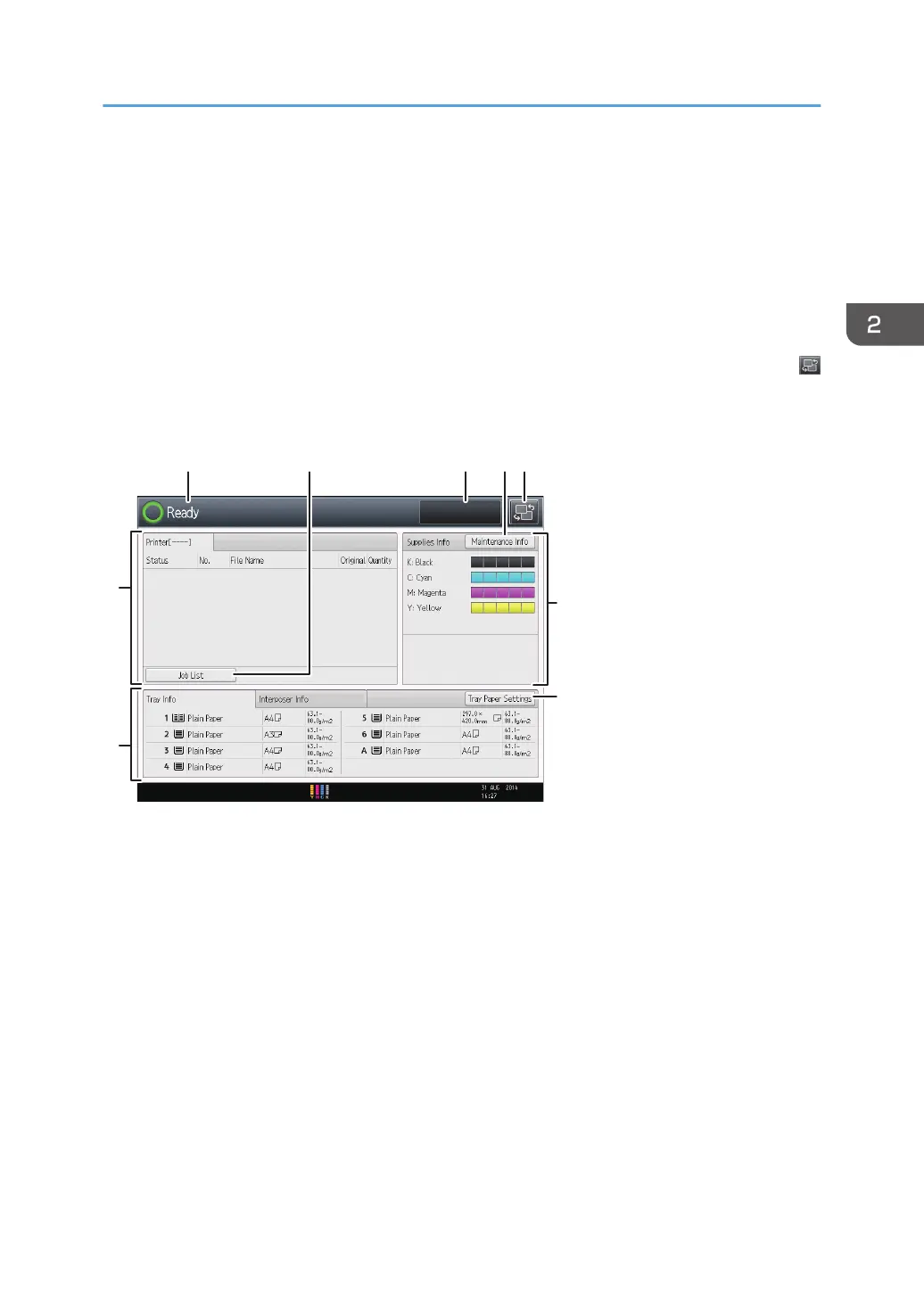 Using the [Top] screen, you can check the job list, toner status, and paper status.