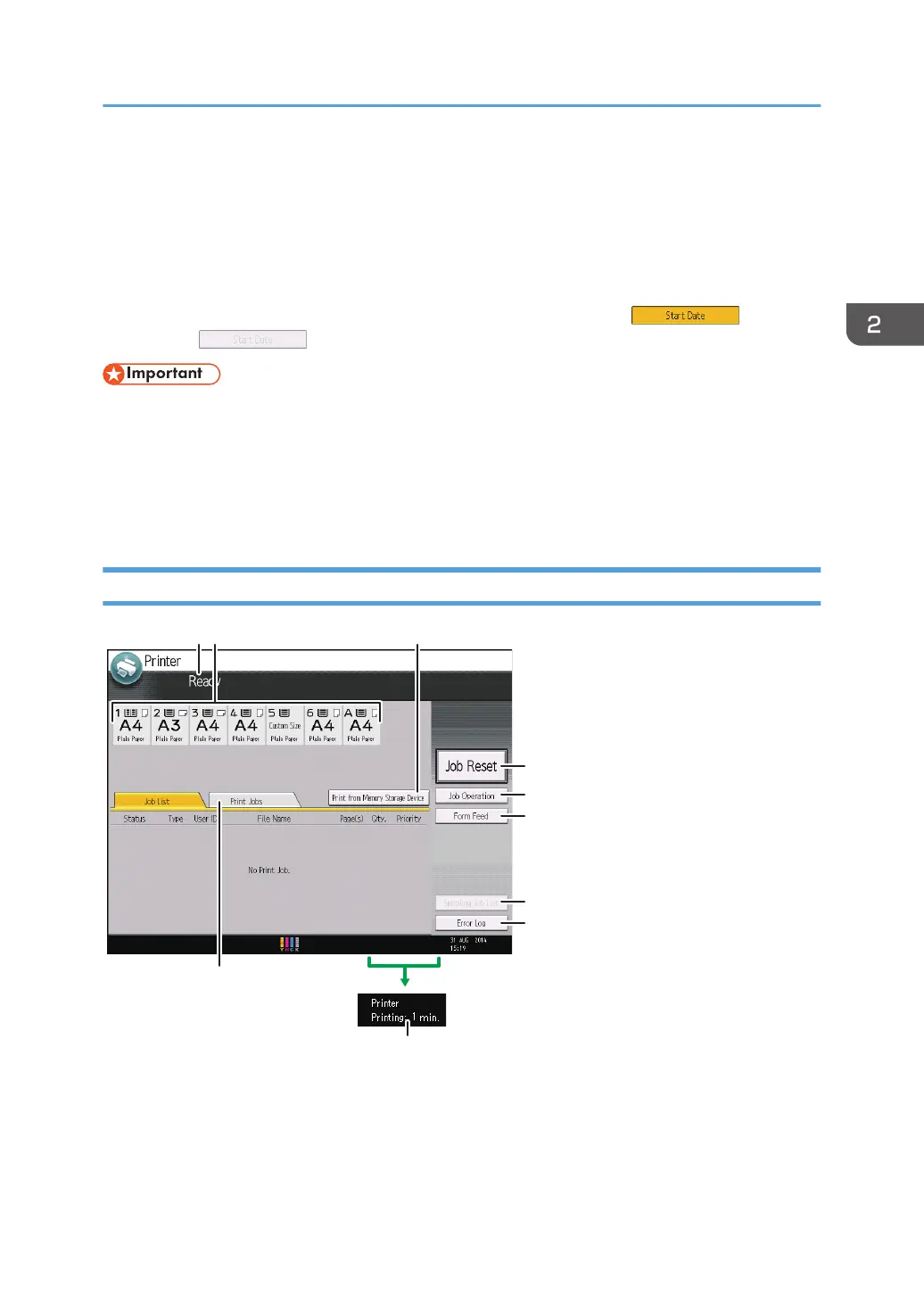 The [Printer] screen is set as the default screen when the machine is turned on.