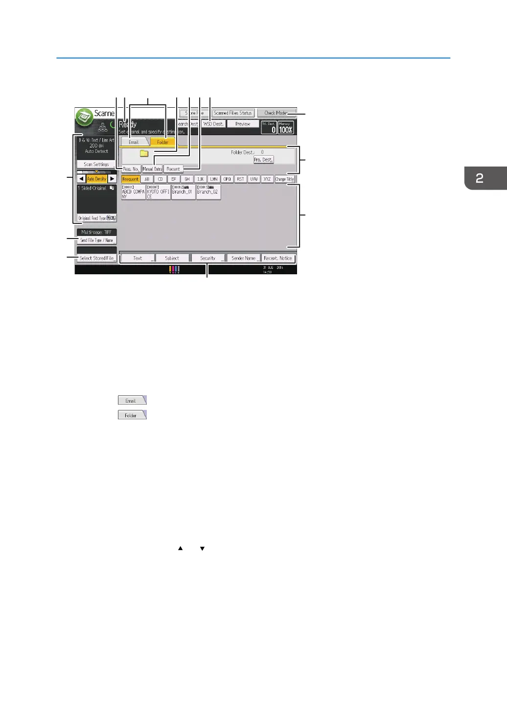 Press to switch between the [Scan to Folder] screen and [Email] screen.