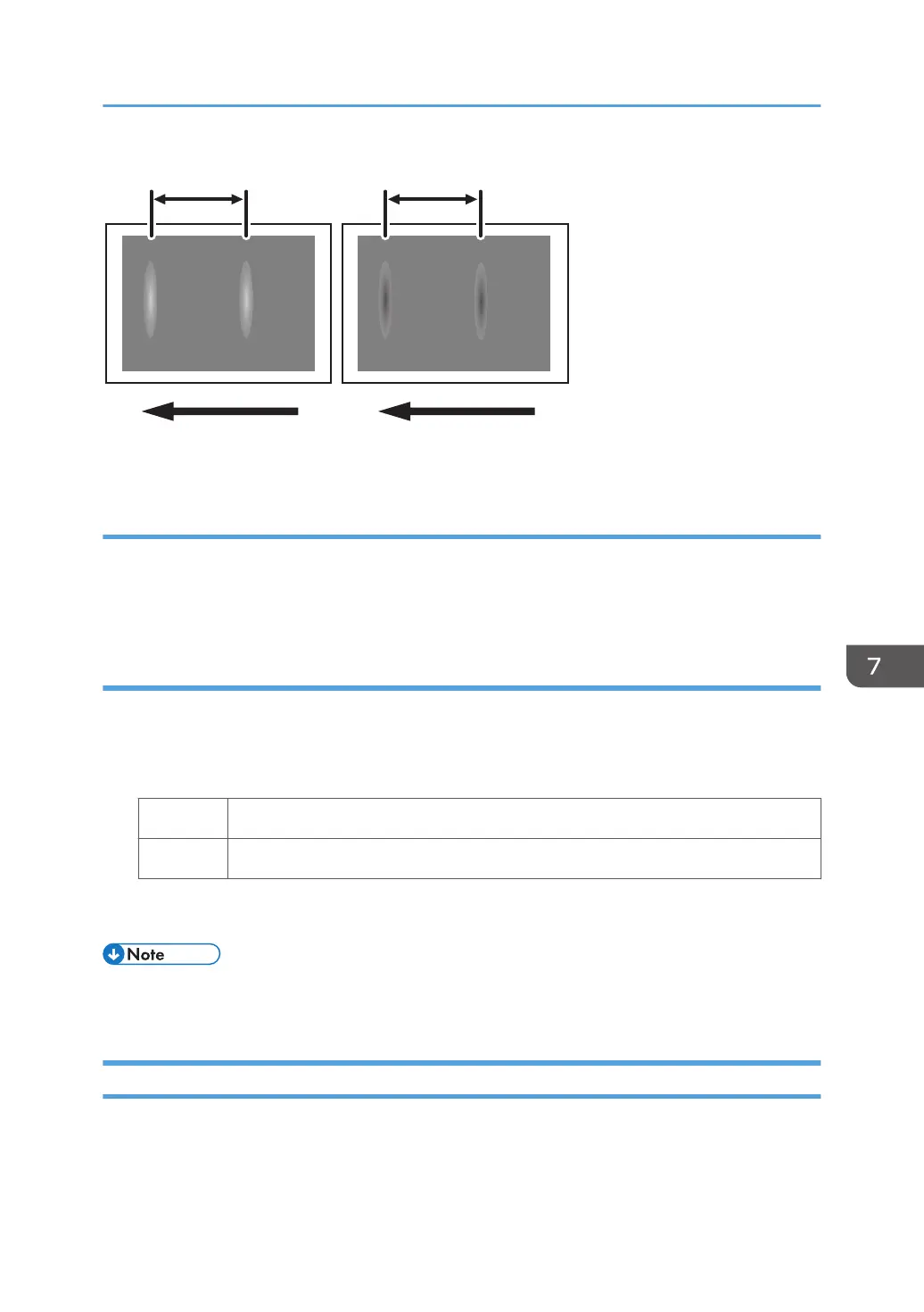Printing in the area extending approximately 90 mm (3.5 inches) from the trailing edge is fainter or
