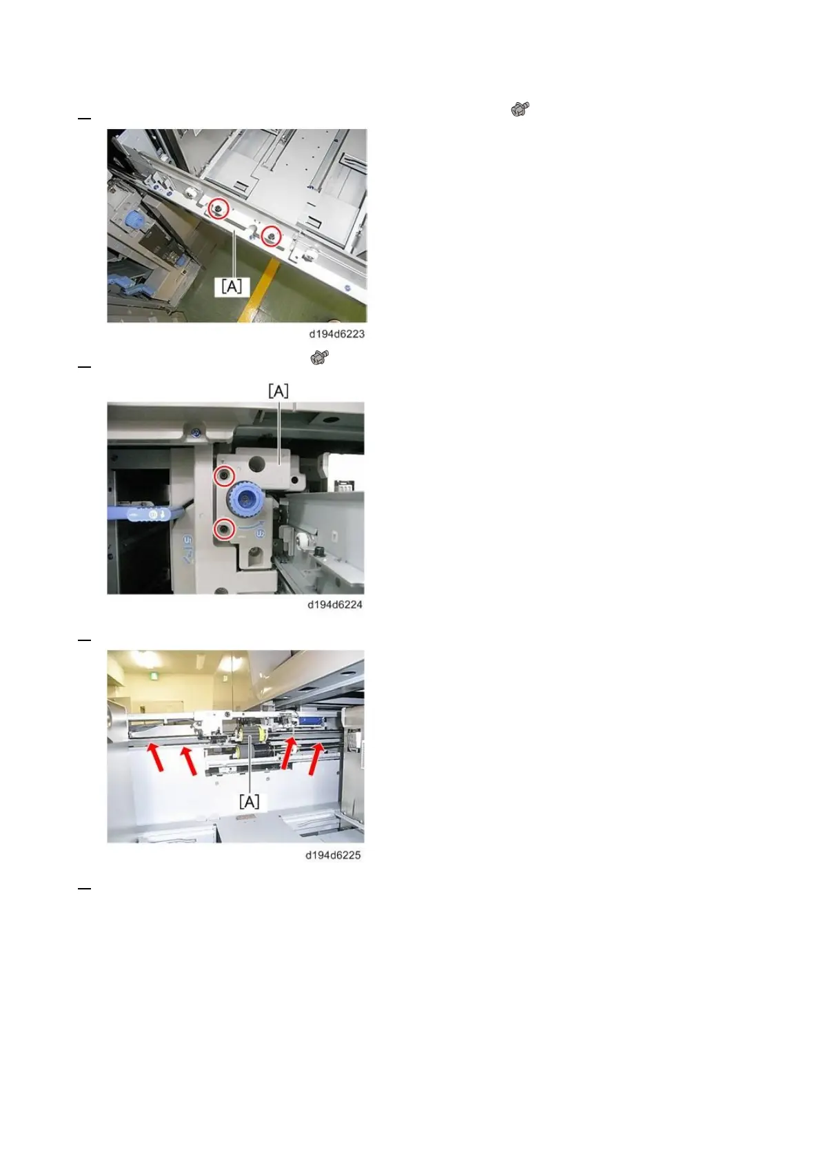 2. Pull out the paper feed tray and remove the tray face plate [A] ( x2).