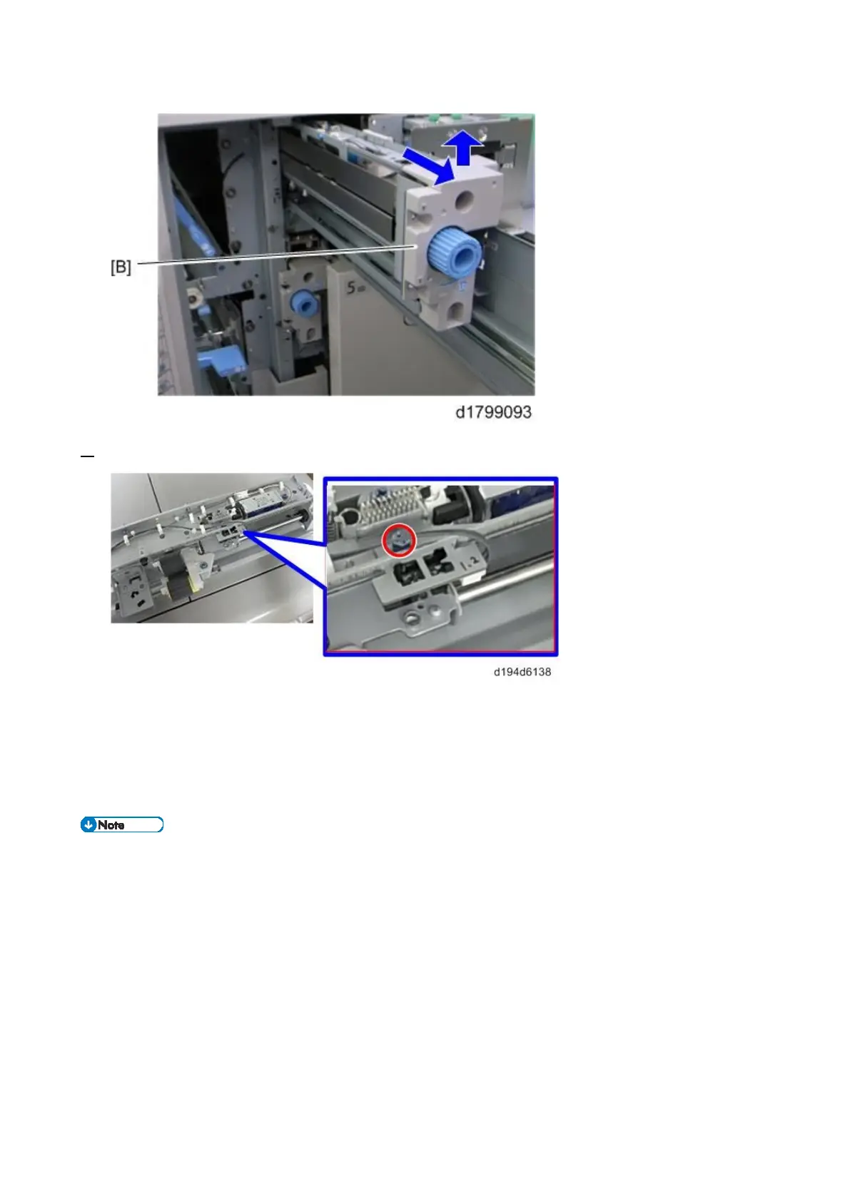 Position the paper lift sensor bracket so it increases the gap [C] between the stay [A] and the paper lift