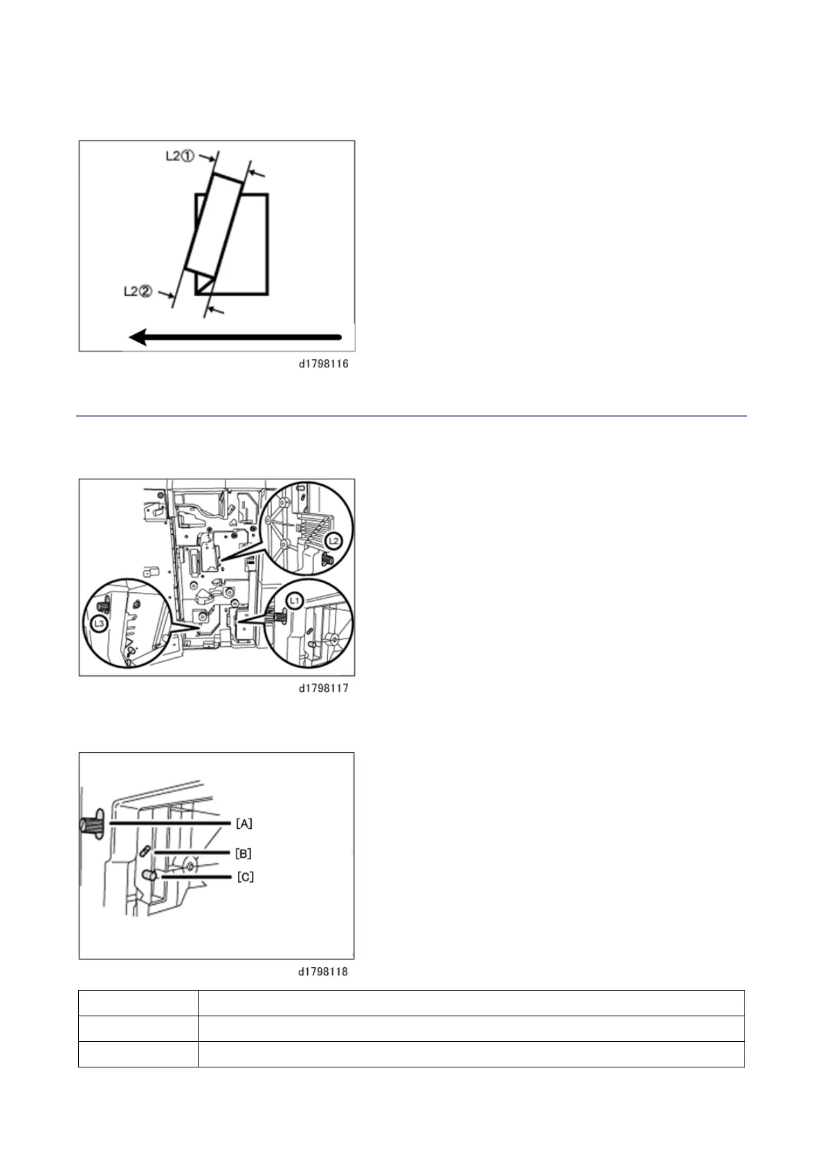 The multi-folding unit has three adjusting screws (L1, L2, and L3) to adjust deviation.