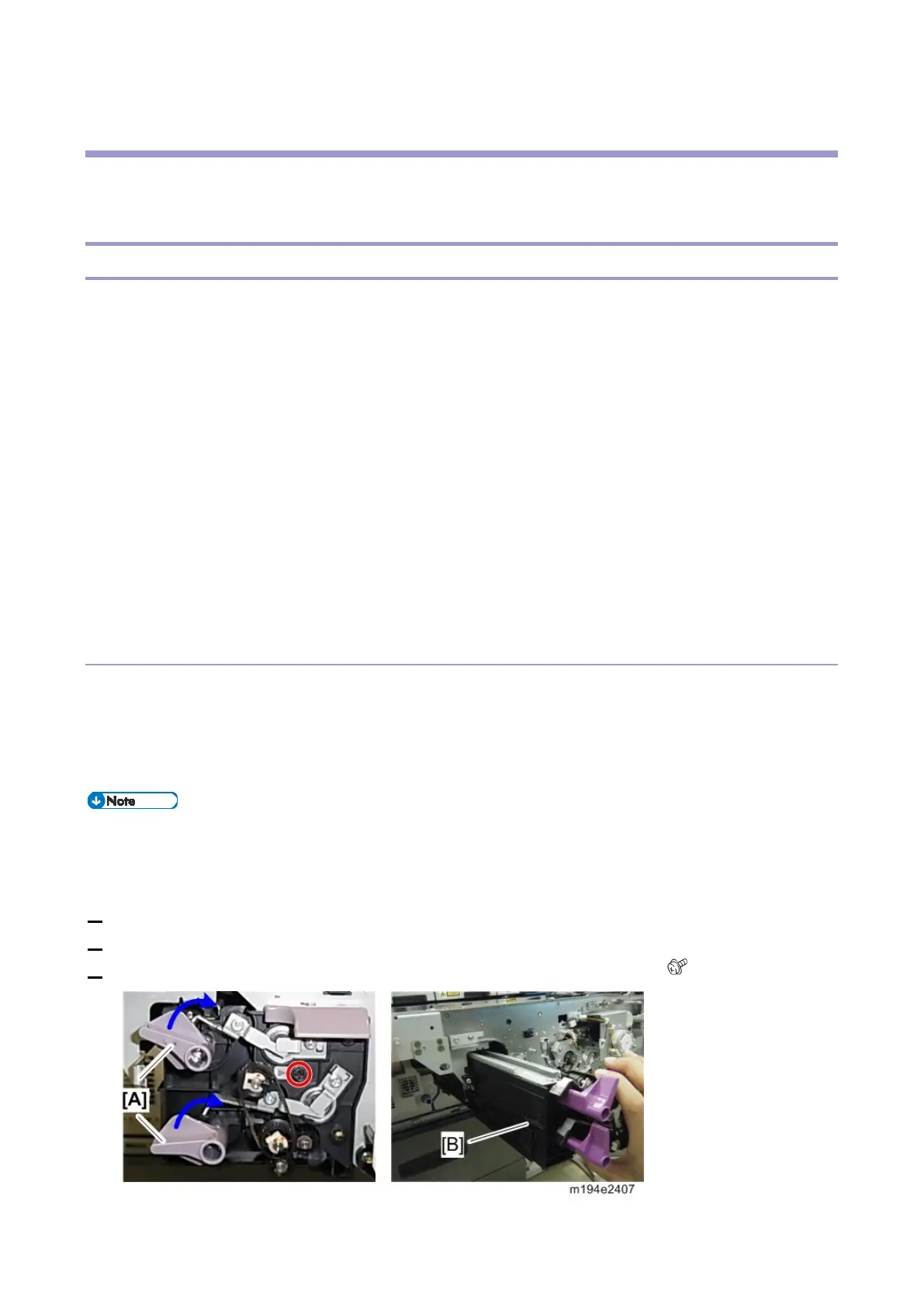 3. Remove the screw and pull the ITB cleaning unit [B] out slowly unit it stops ( x1)