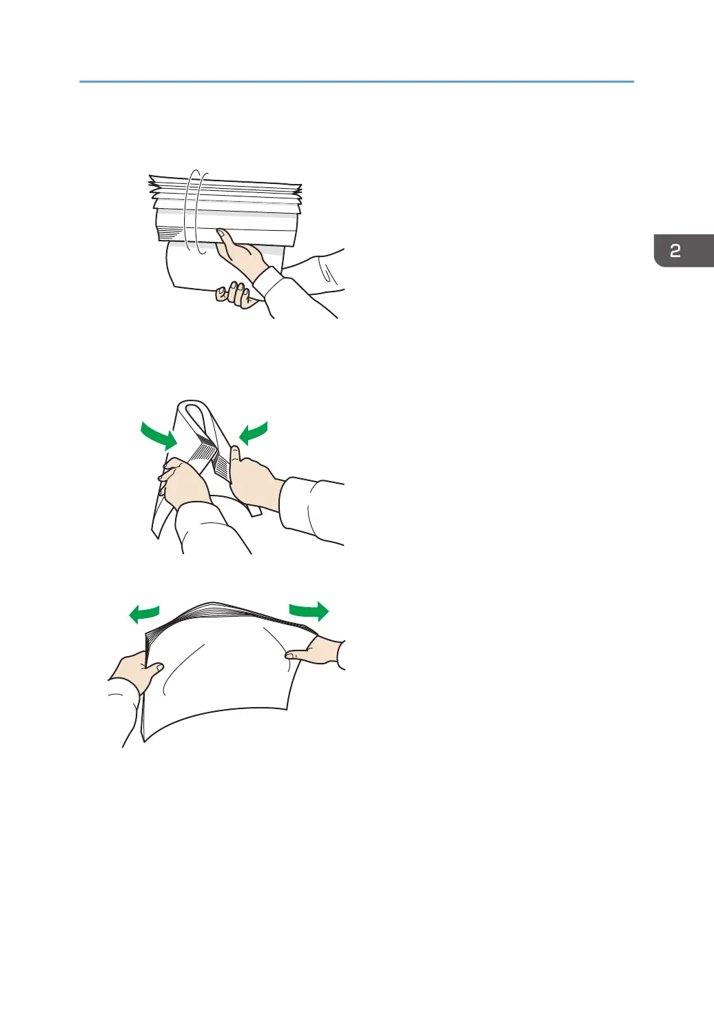 2. Holding its shorter ends, flex the stack back and forth to create space between the sheets.