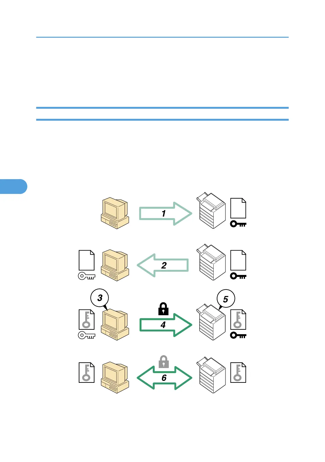 1. To access the machine from a user's computer, request the SSL device certificate and public key.