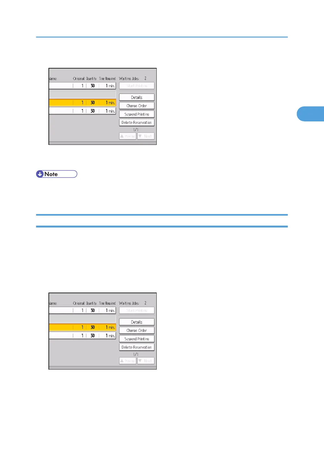 • To resume the suspended jobs, press [Resume Printing].