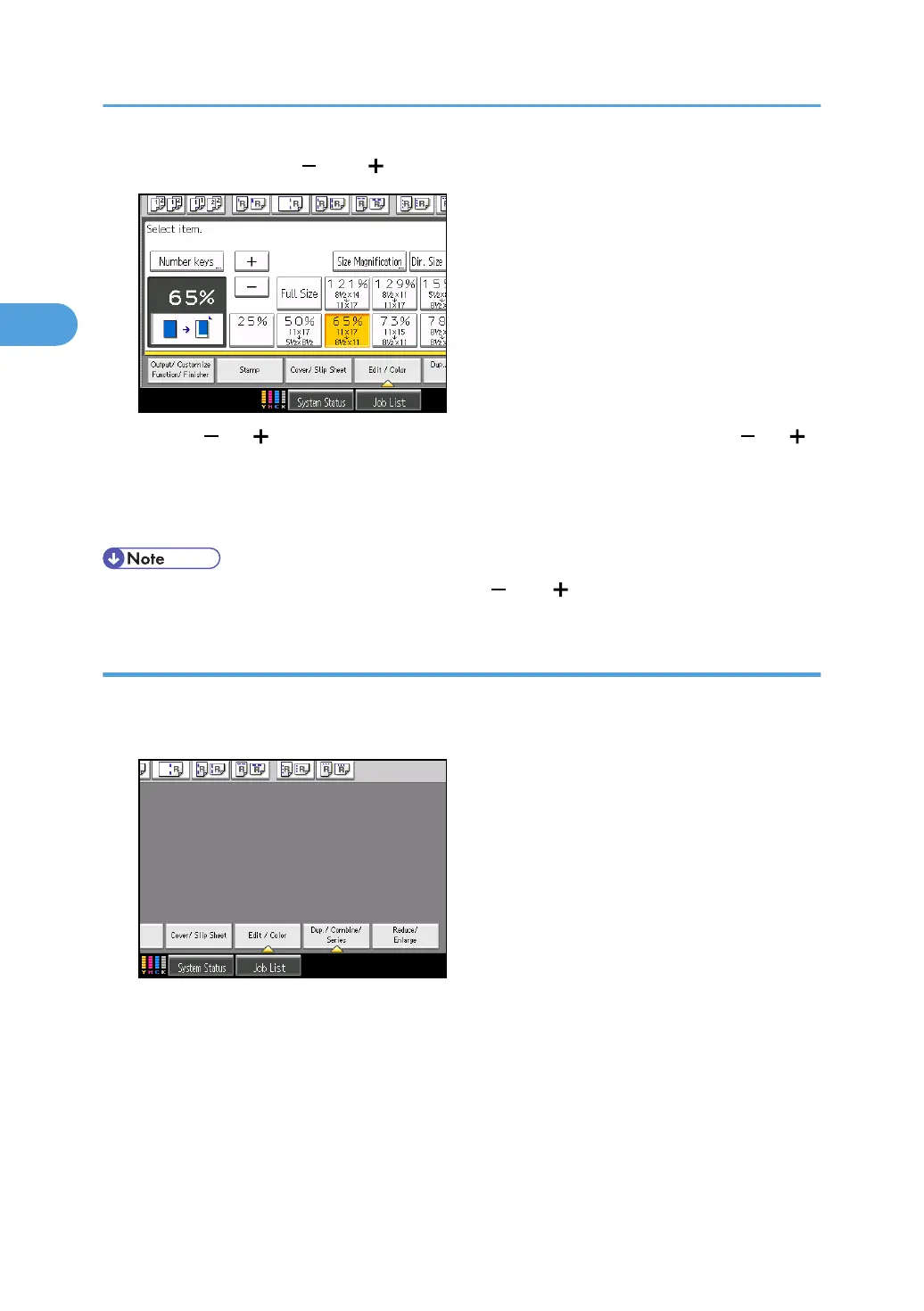 Pressing [ ] or [ ] changes the ratio in increments of 1%. Pressing and holding down [ ] or [ ]