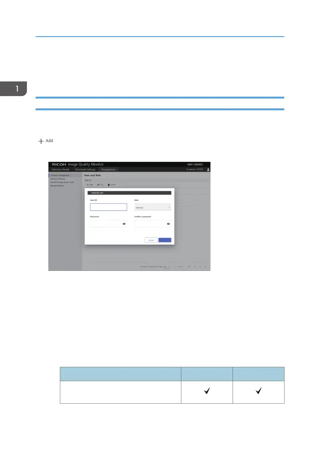 Selectable privileges are "Operator" and "Administrator". You can use the following functions
