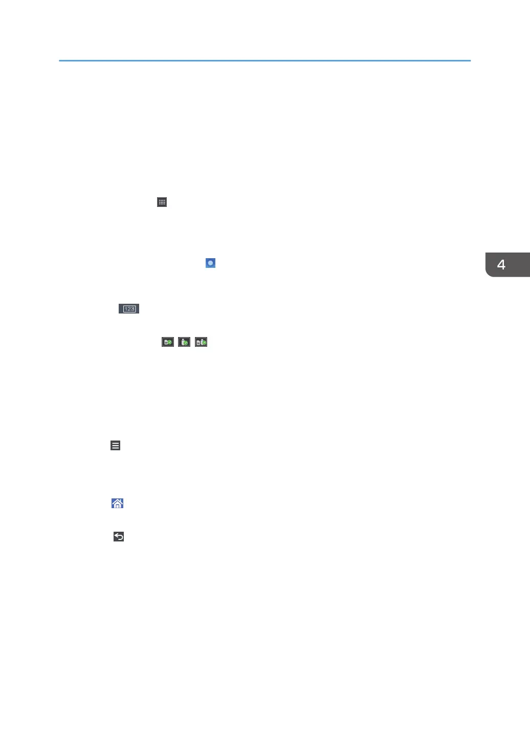 For details about icons on each screen, see page 78 "Main Icons on the [Home] Screen".