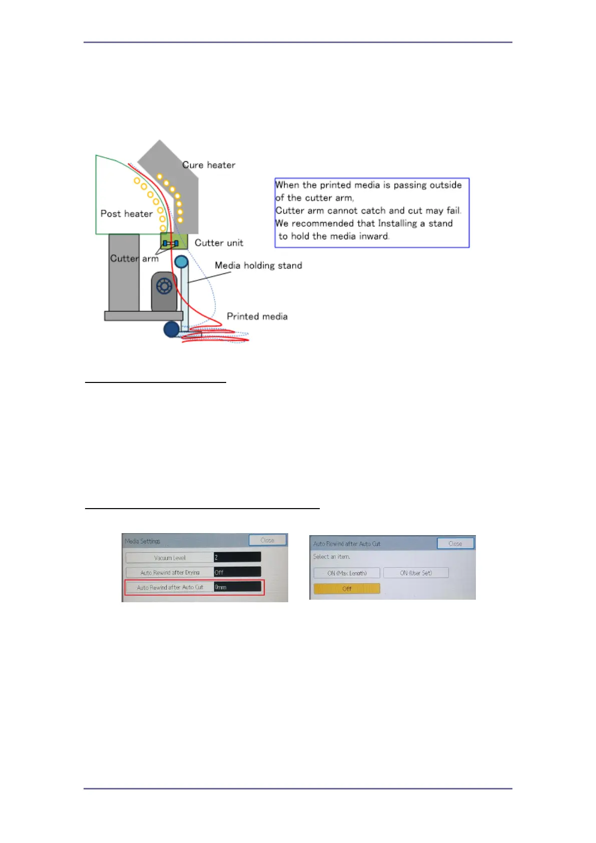 ON (User Set) *: Rewind the media 0-600mm automatically after auto cutting the current job