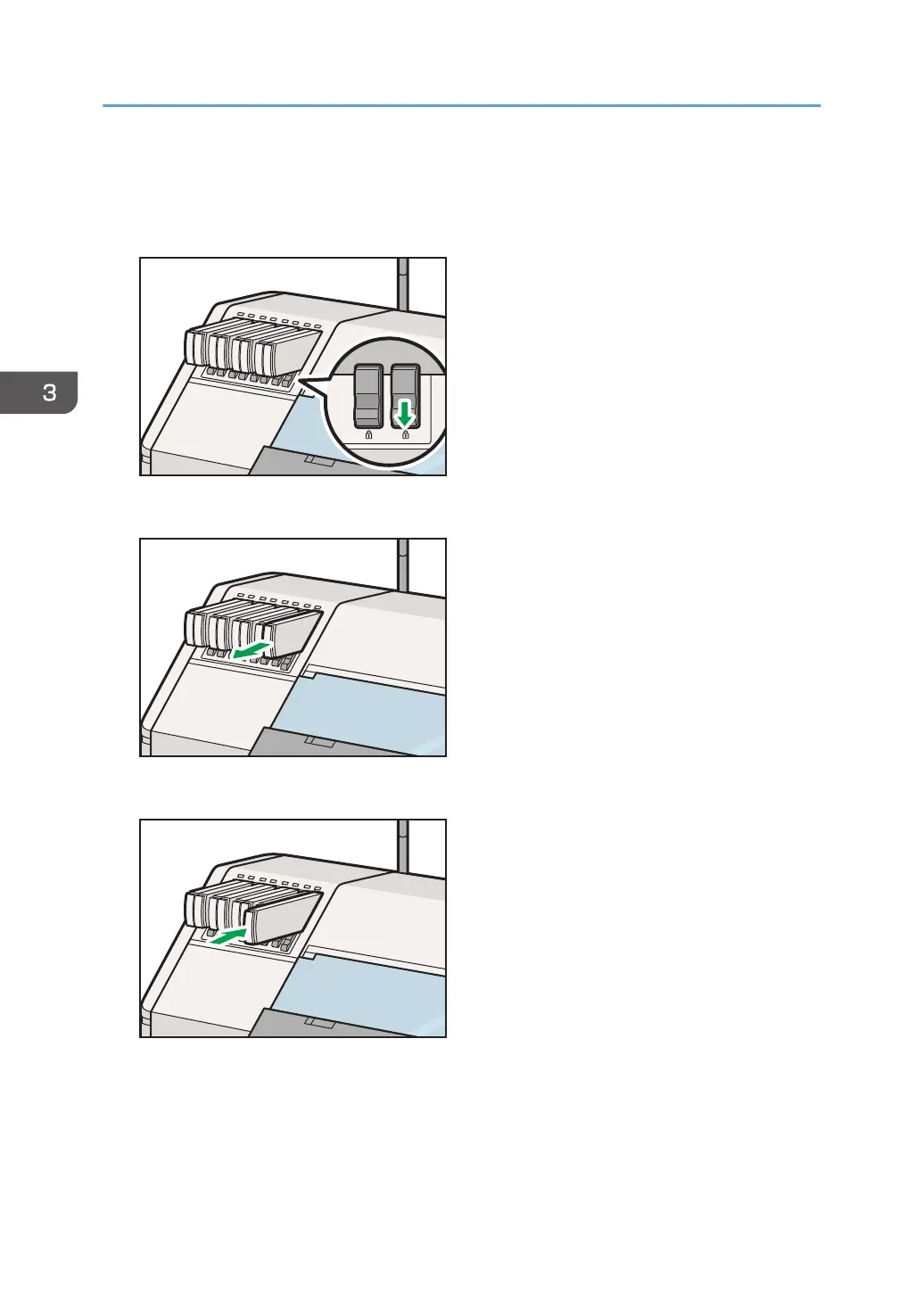 7. Slide down all lock levers for the white ink cartridges to unlock the cartridges.