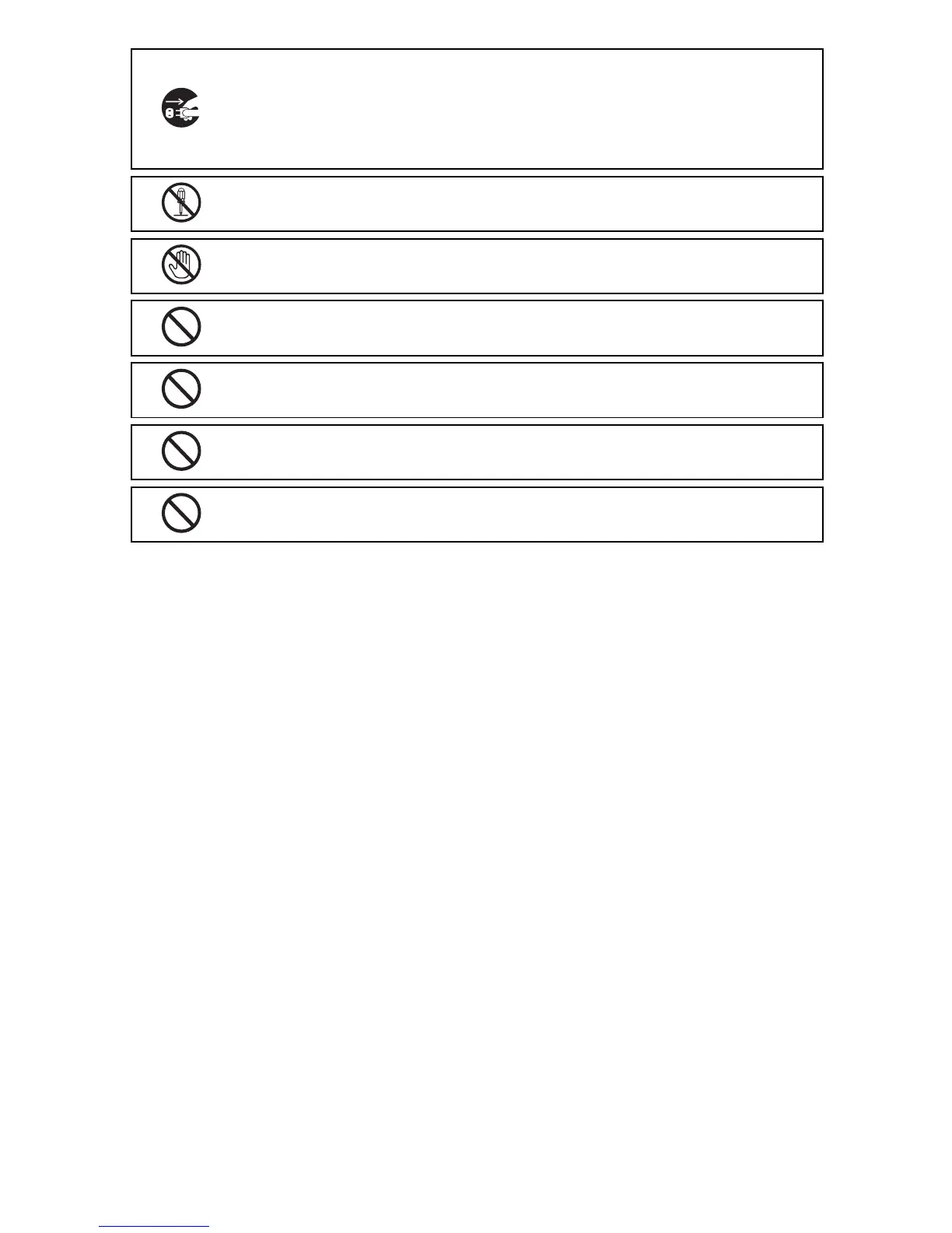 Do not handle the plug during thunderstorms. Failure to observe this precaution