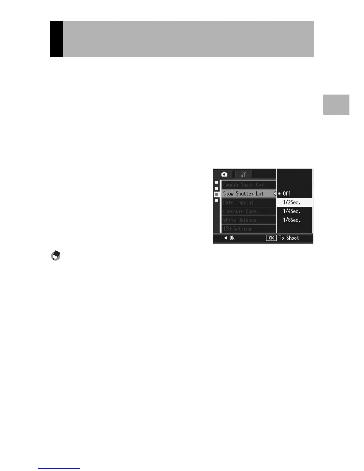 • When using the slow shutter limit, the light quantity may be insufficient depending on