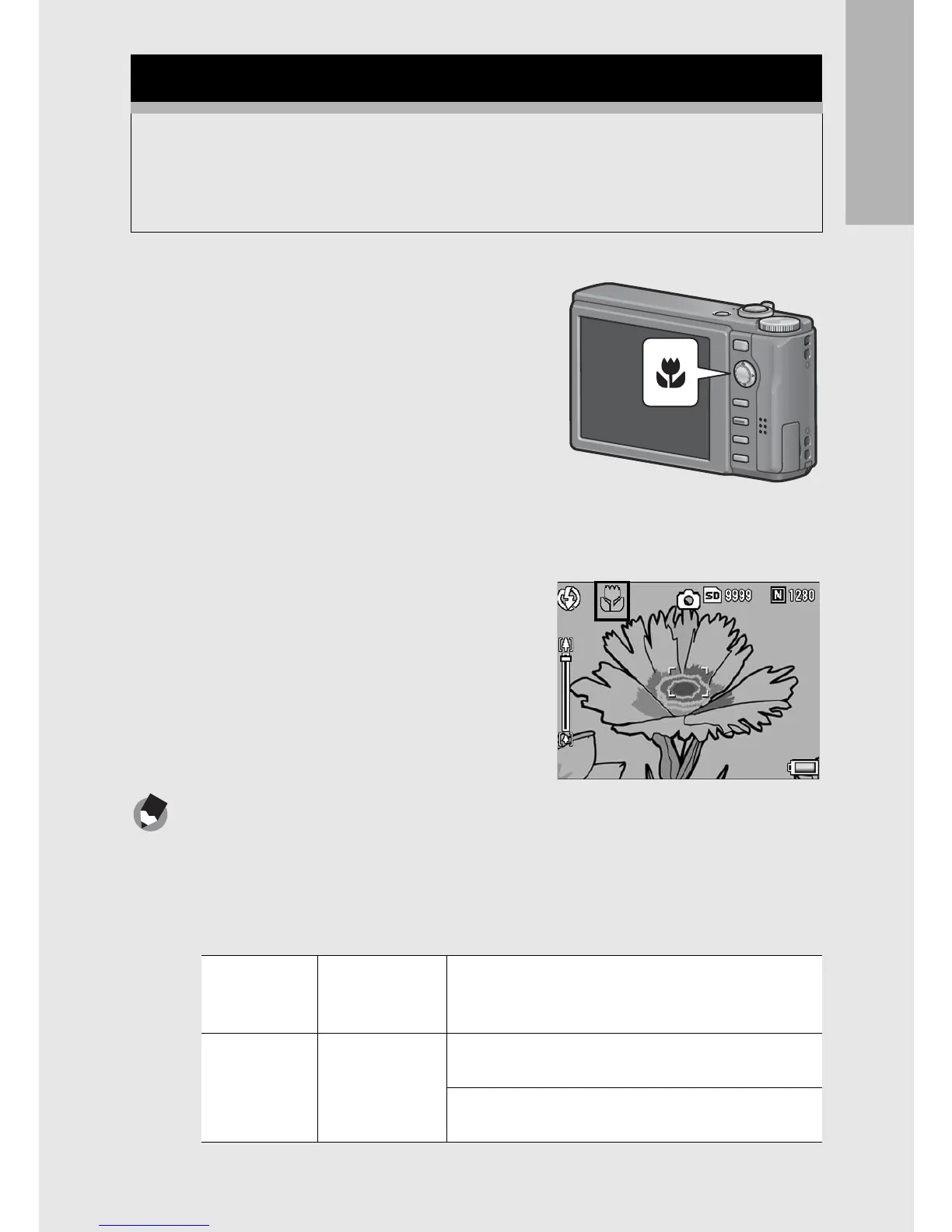The macro shooting function lets you take shots of subjects that