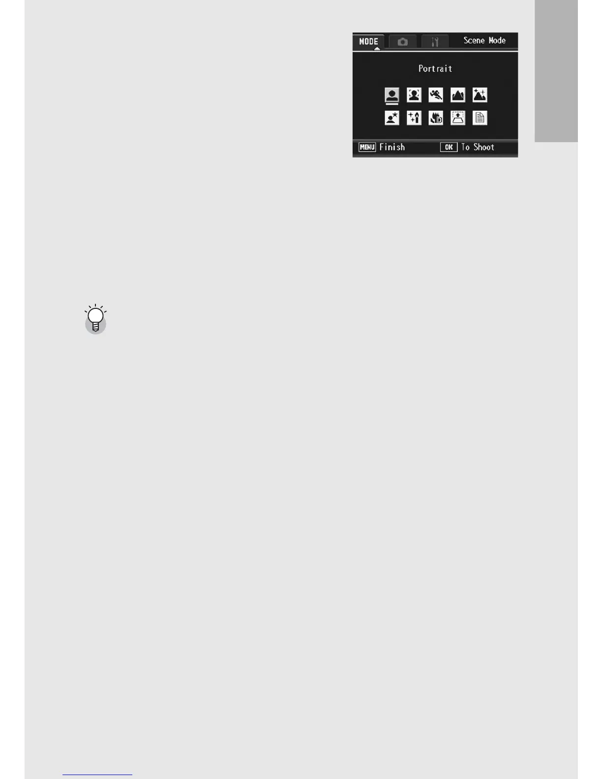 or twice to select the [MODE] tab. Now press the ADJ./OK button $ once to display