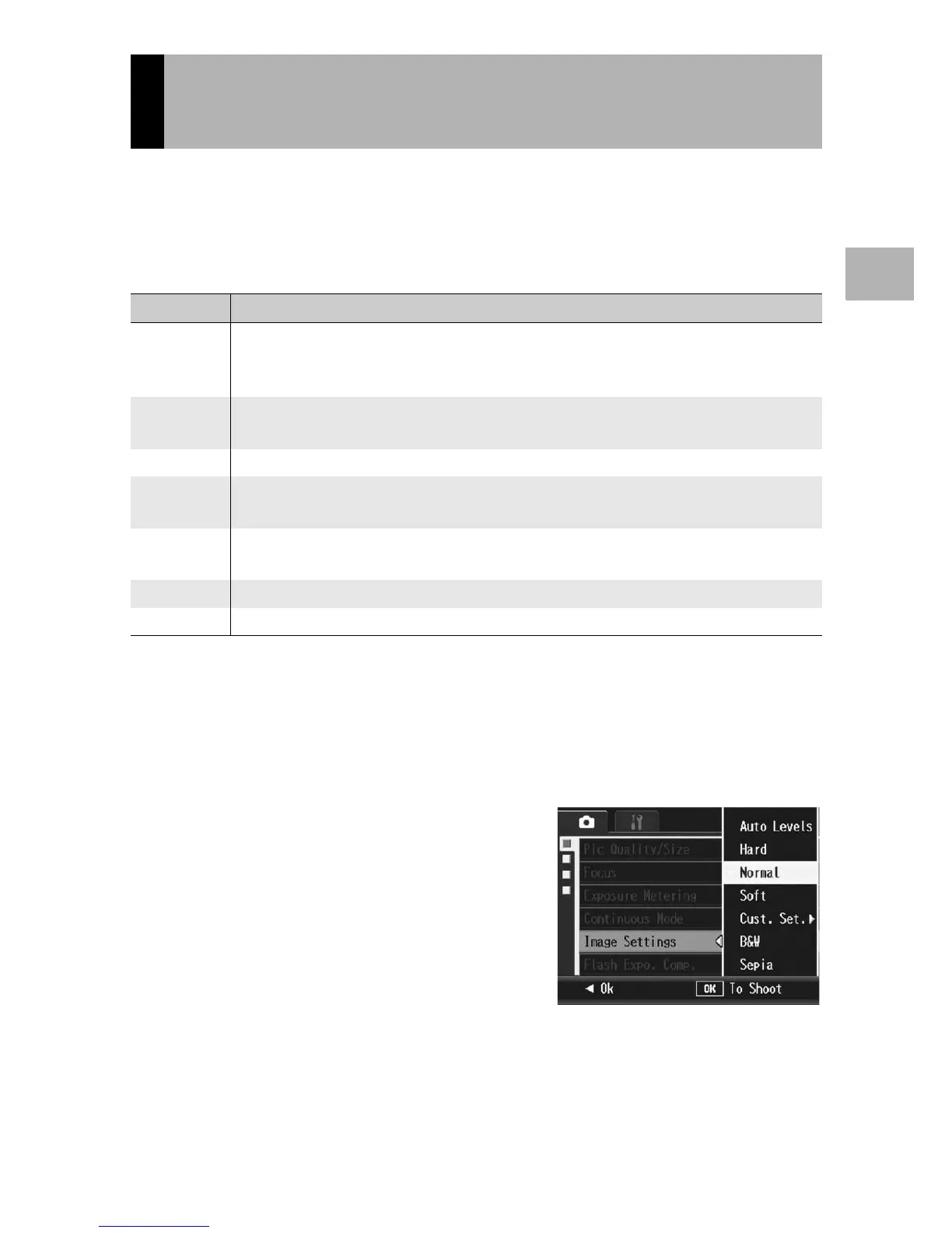 Auto Levels The camera automatically corrects image tone when images are recorded in
