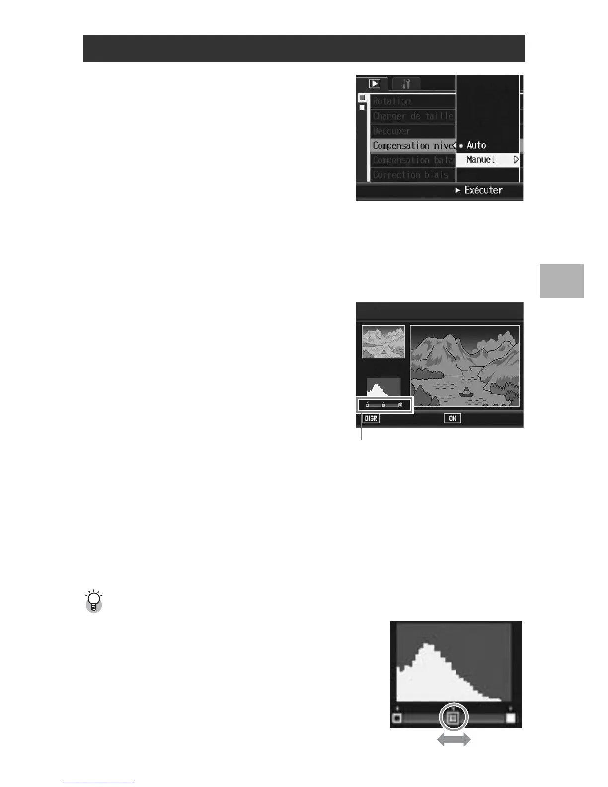 • Pour annuler la compensation de niveau, appuyez sur la touche DISP.