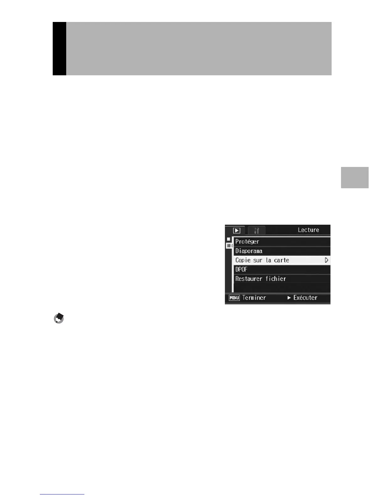 • Il est impossible de copier le contenu d’une carte mémoire SD dans la mémoire