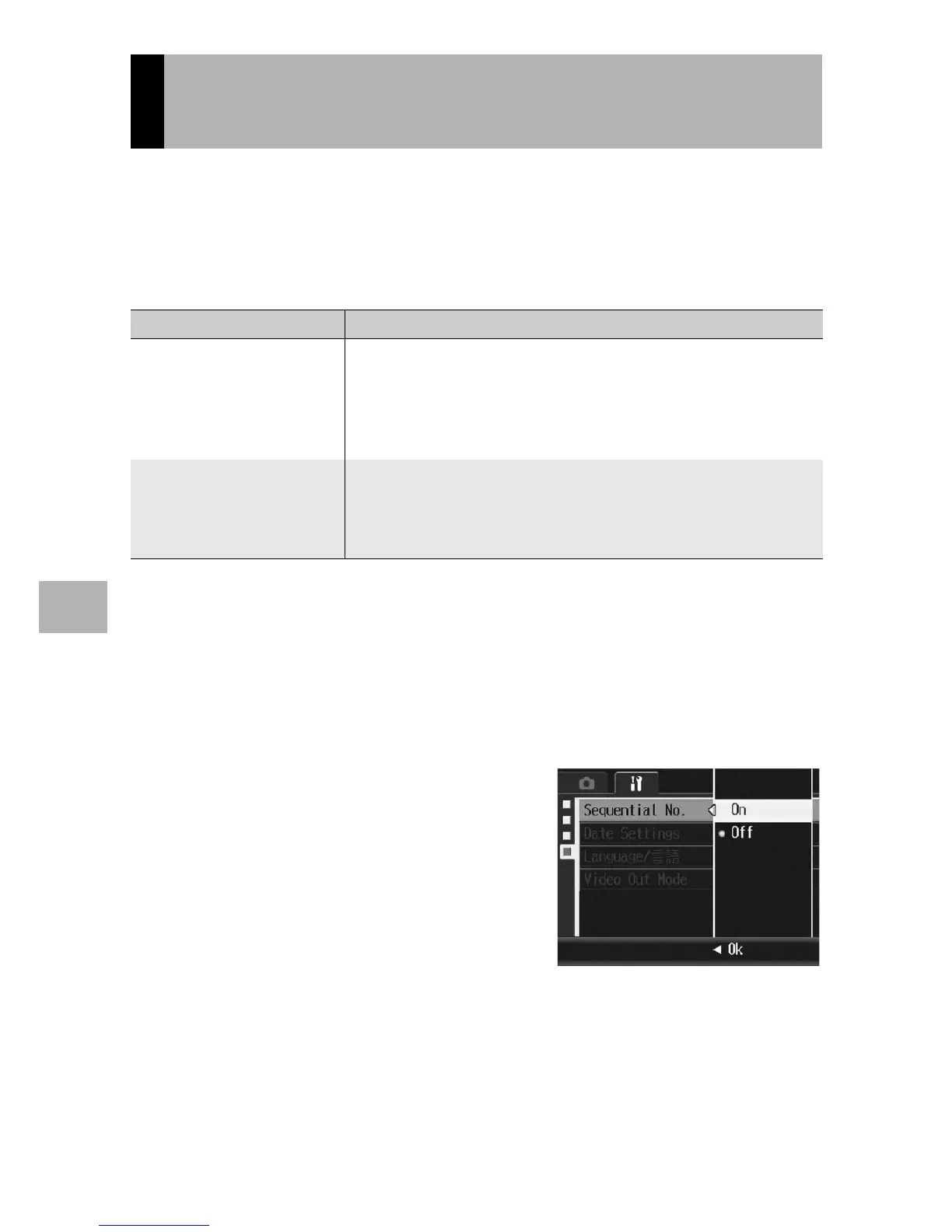 On (Continue numbering) File names are automatically assigned to still images you take,