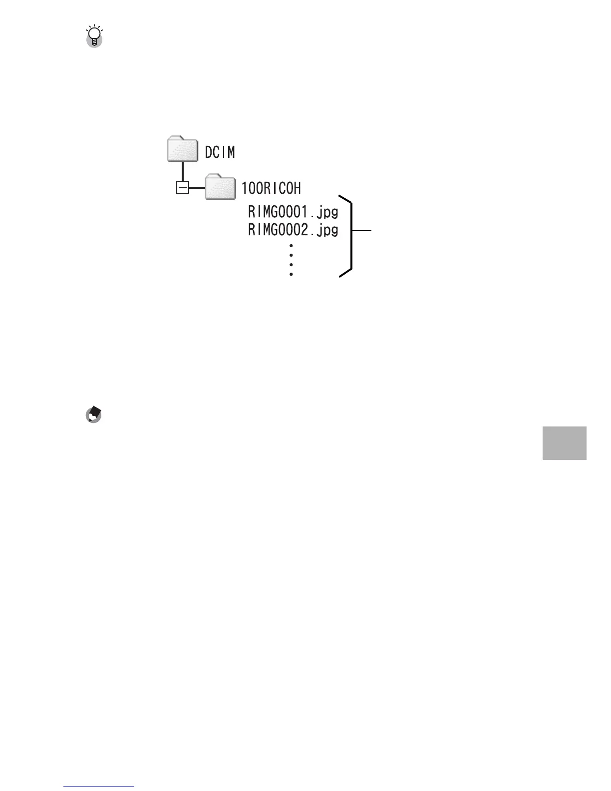 • Images are stored in an SD memory card in the hierarchy shown below.