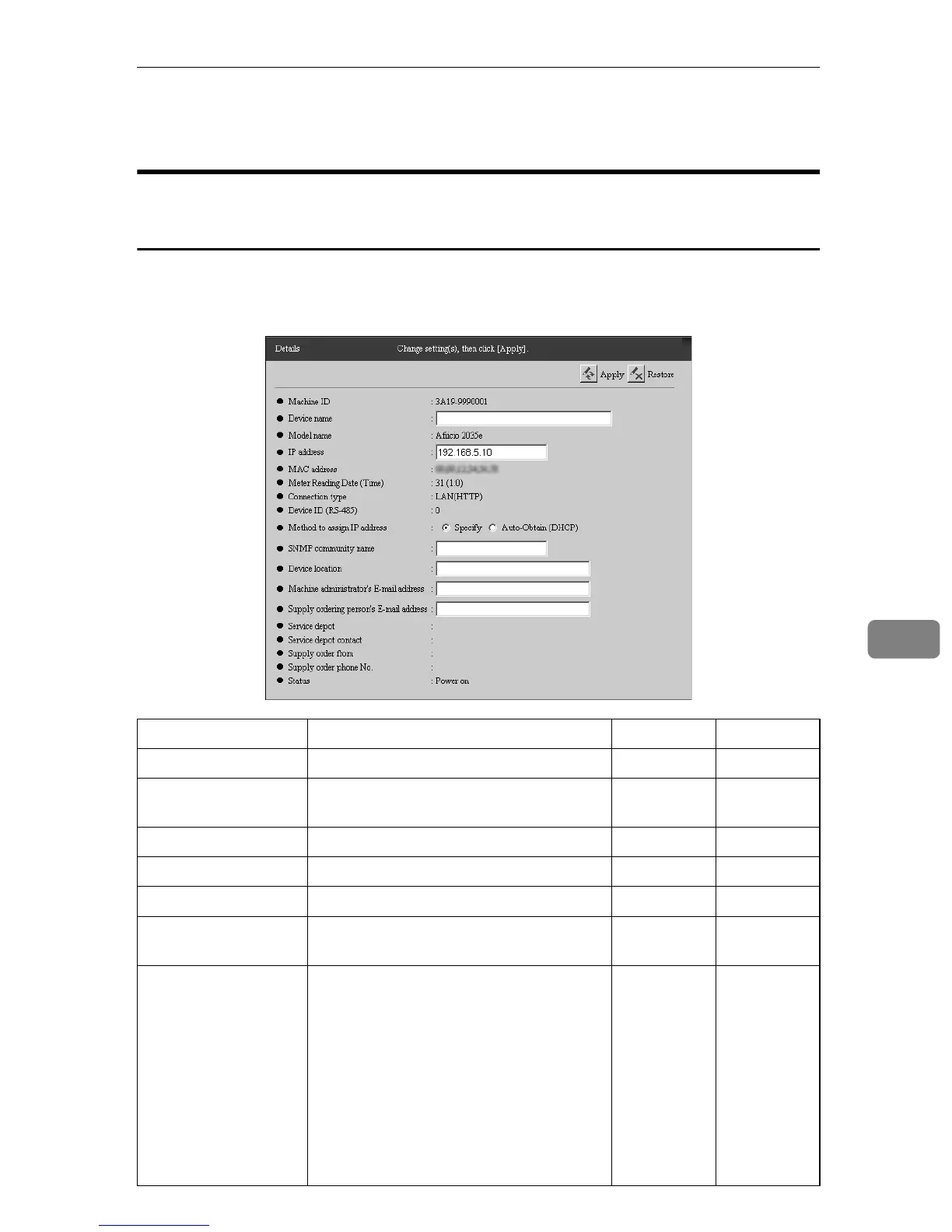IP Address This is the IP address of the equipment. ❍❍