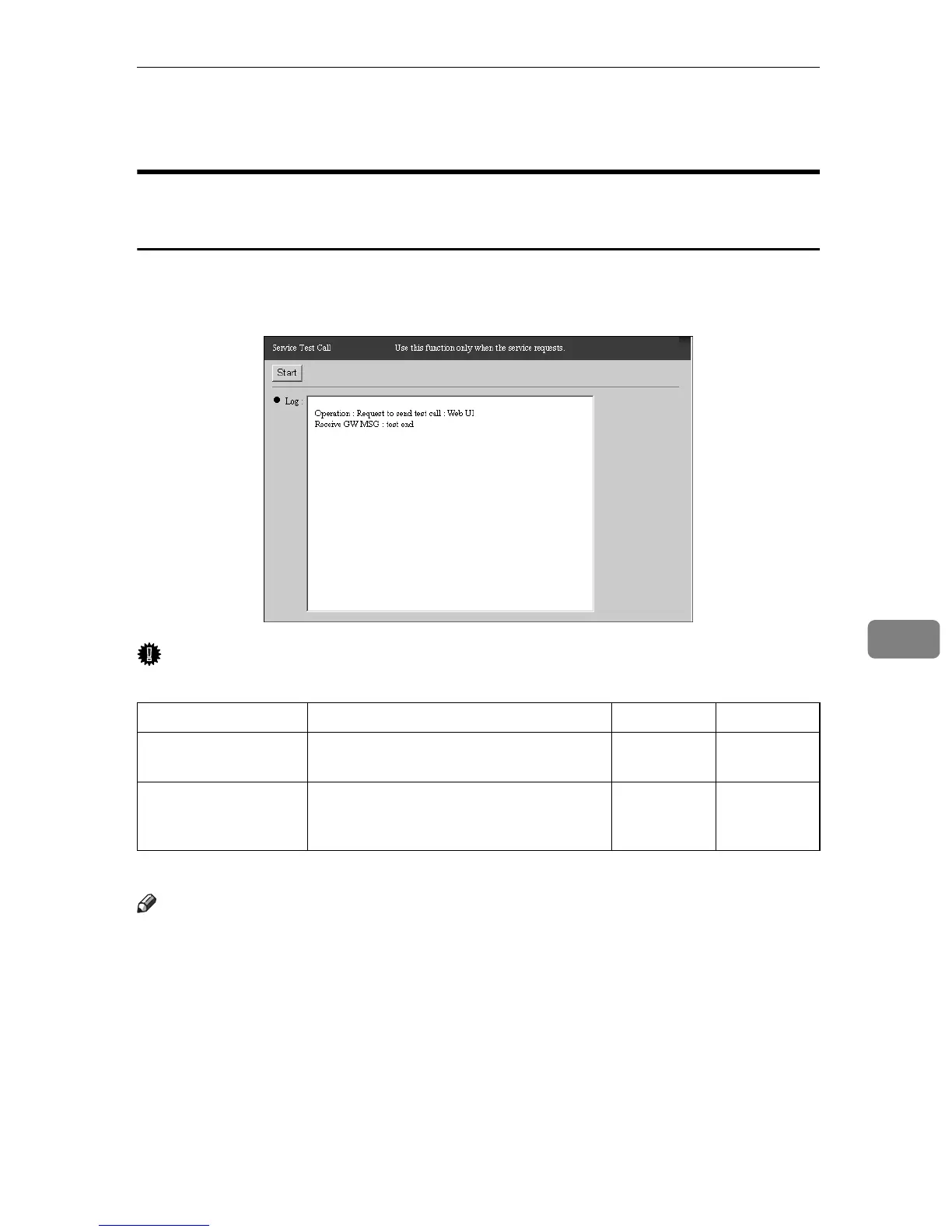 ❒ The results of [Service Test Call] (The contents of [Log]) will not be sent to the