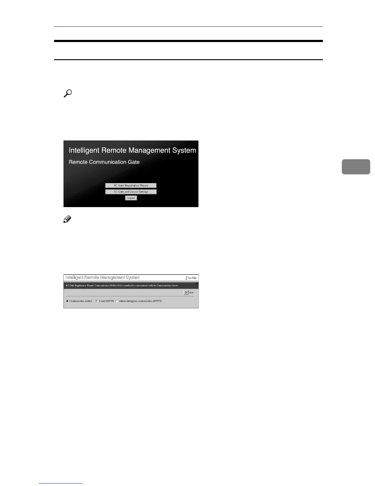 The [RC Gate Registration Wizard: Communication Method] screen appears.