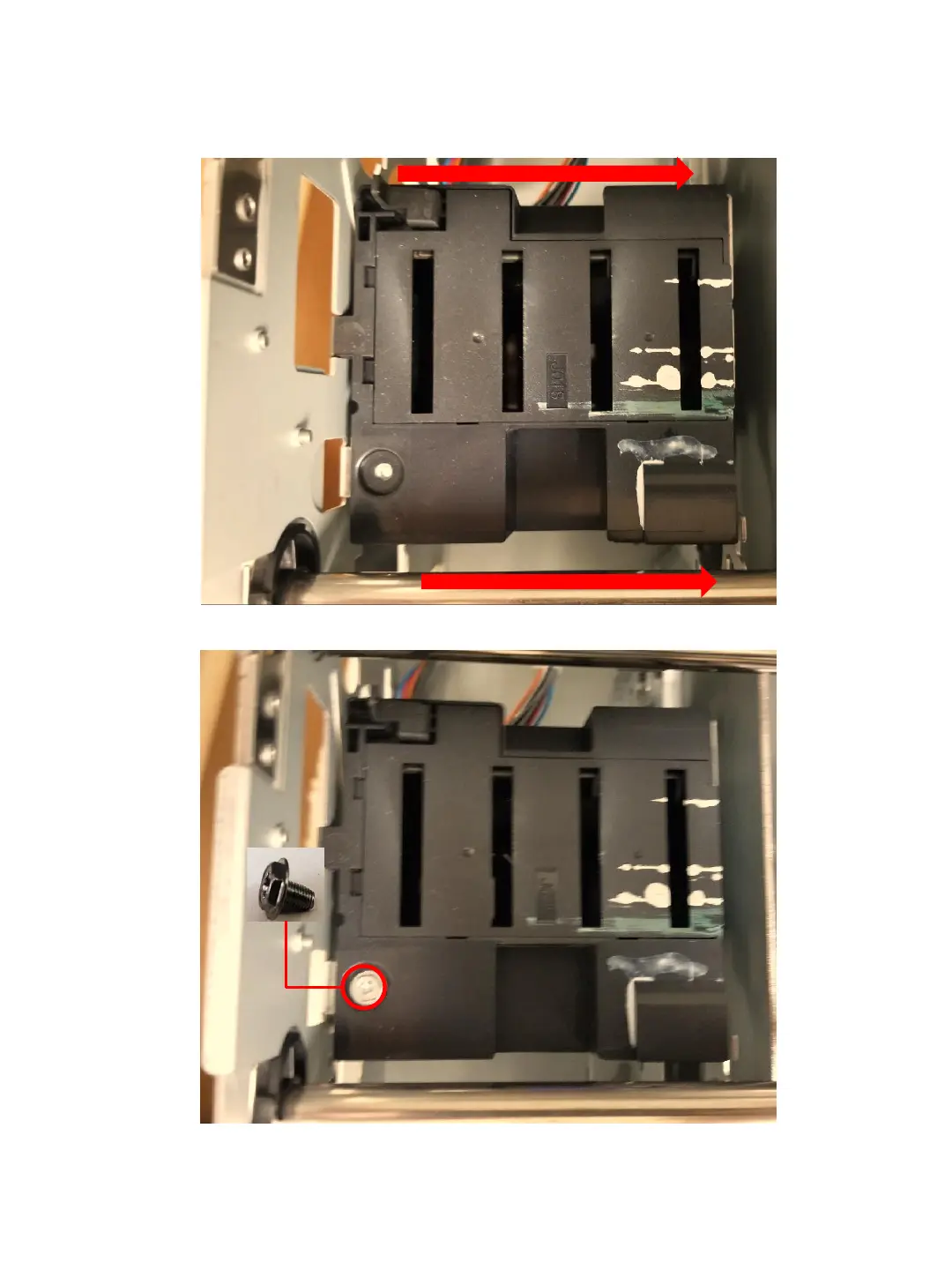 9. Install the (1) screw (M3x6) on the bottom left with a #1 Screw Driver