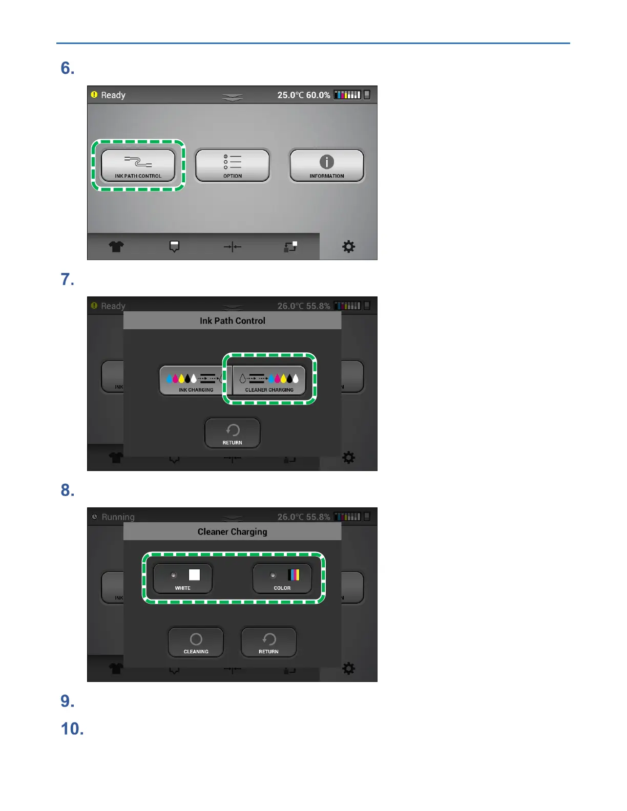 Confirm by pressing [YES] to charge the system with cleaning solution.