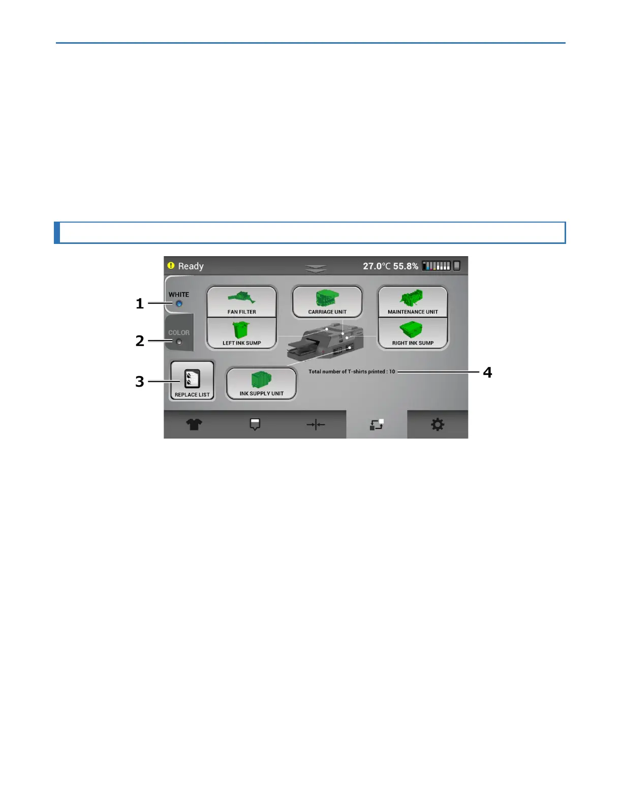 Displays the current usage or status of white ink.