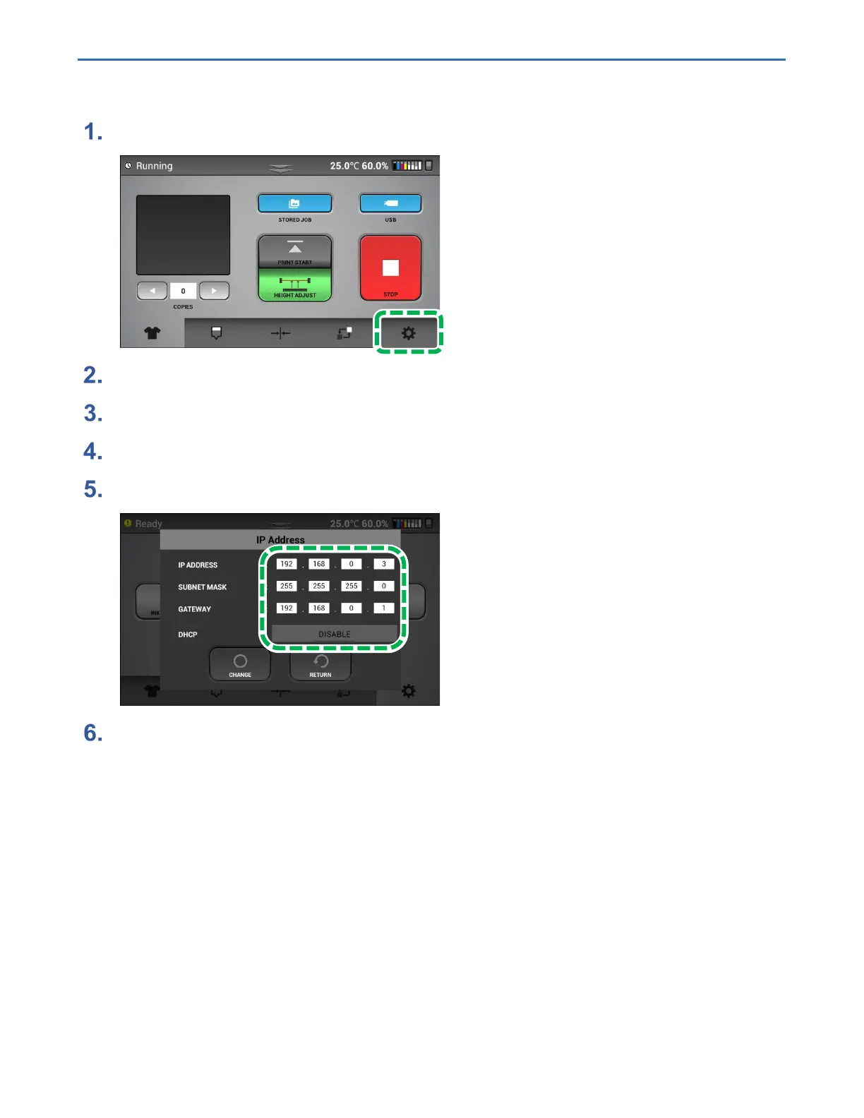 If DHCP setting is “ENABLE”, change to “DISABLE”.