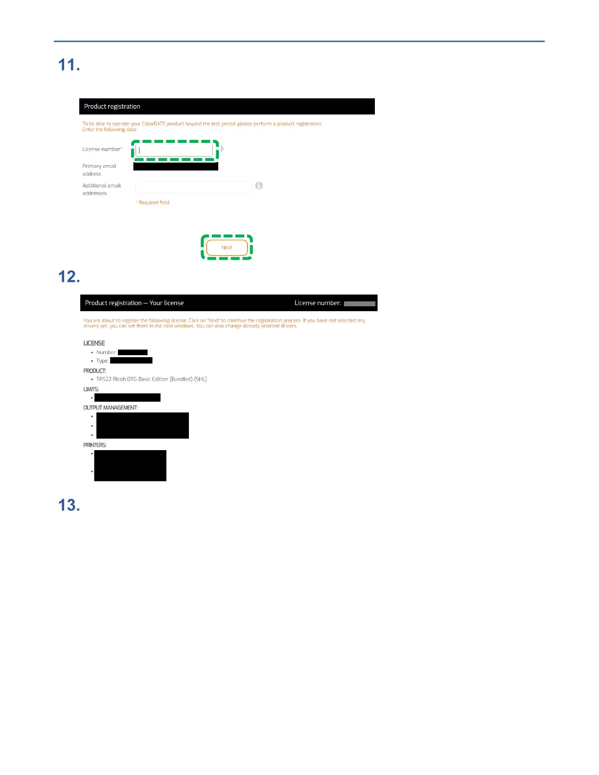 Enter the license number of the license card included with the RICOH Ri 2000
