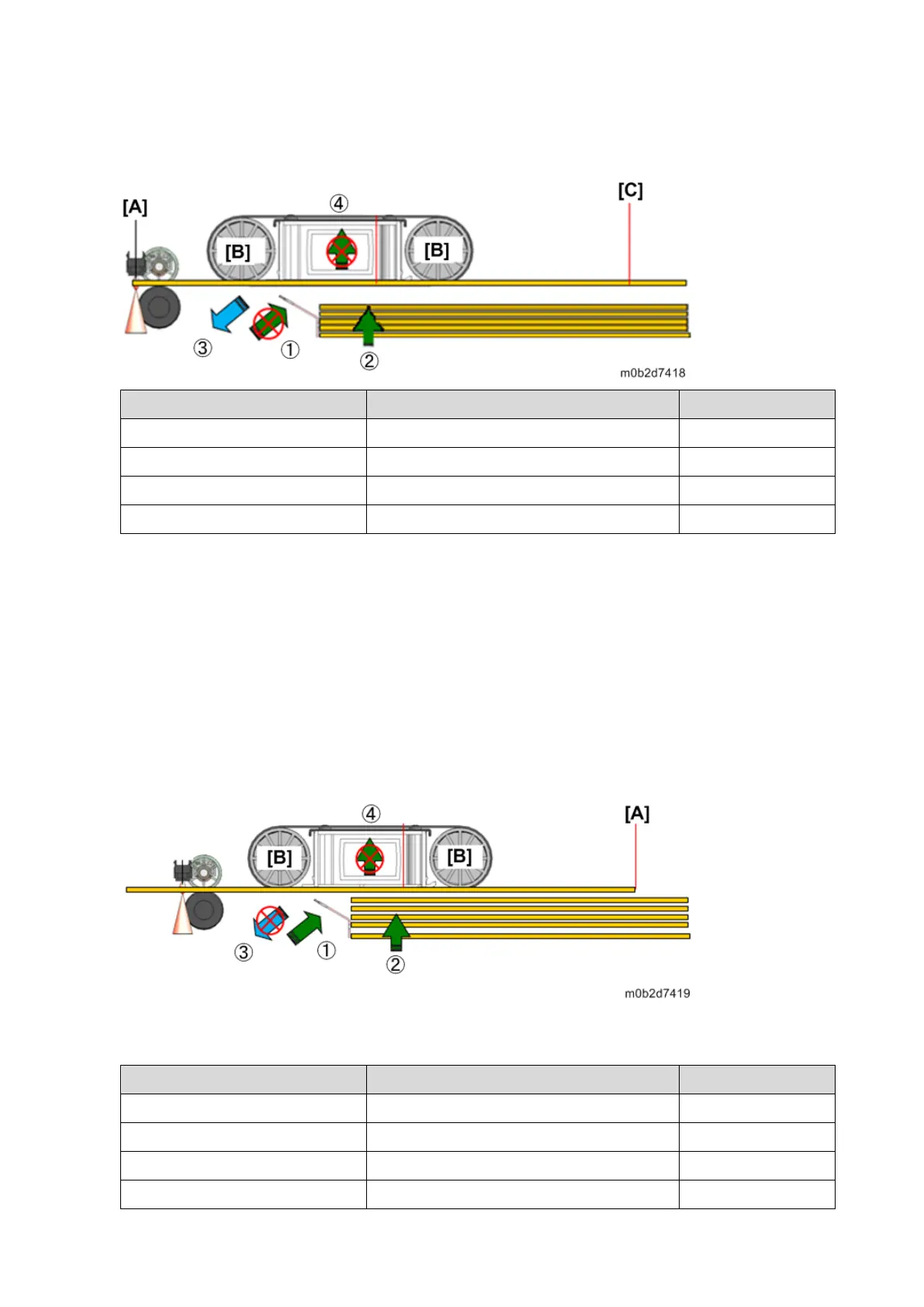 opening position [A], the float/separation shutter opens to assist with the suction of the next sheet