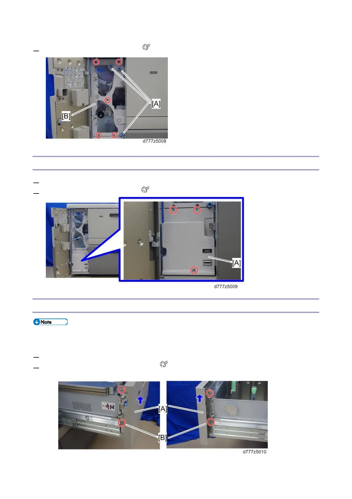 6. Remove the upper inner cover [B] ( x5)