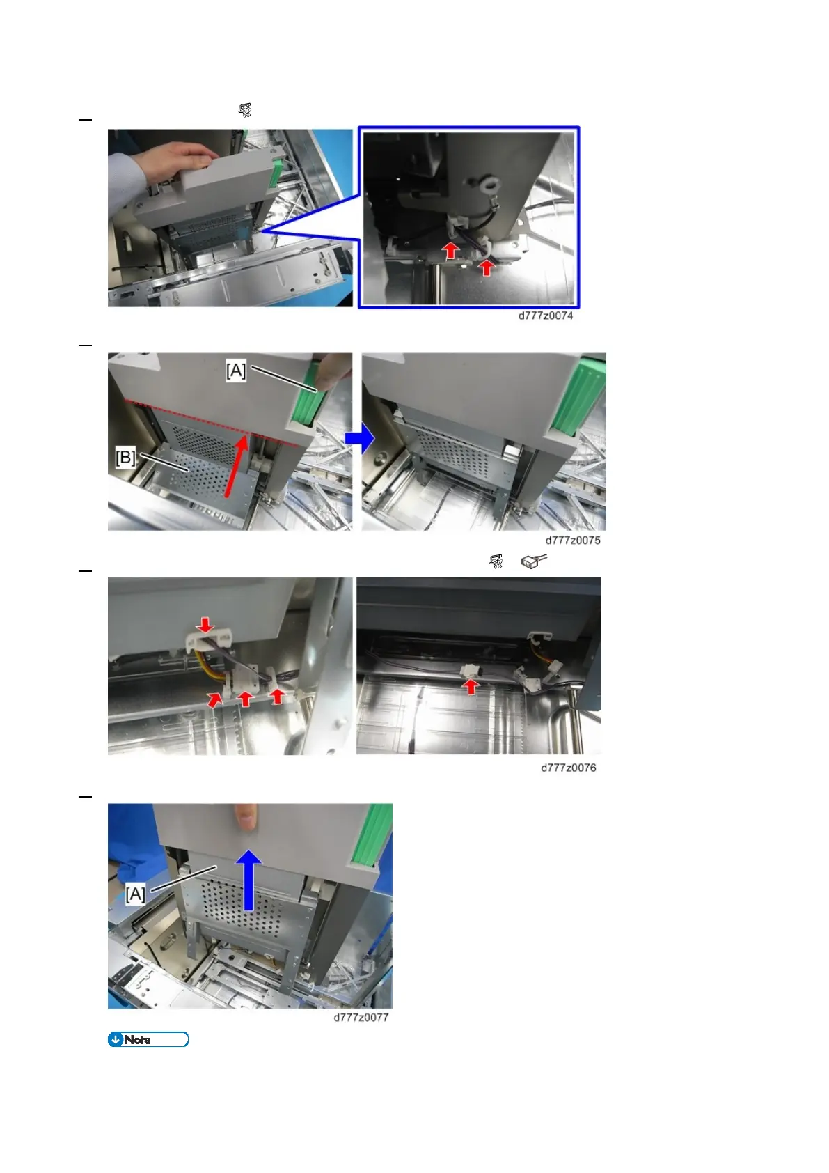 5. Hold down the lock lever [A] and raise the side fence [B].