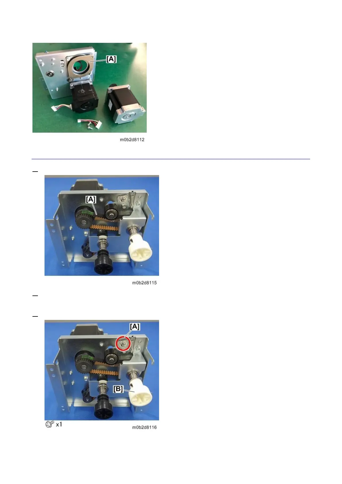 1. Make sure that the motor is correctly placed on the timing belt [A].