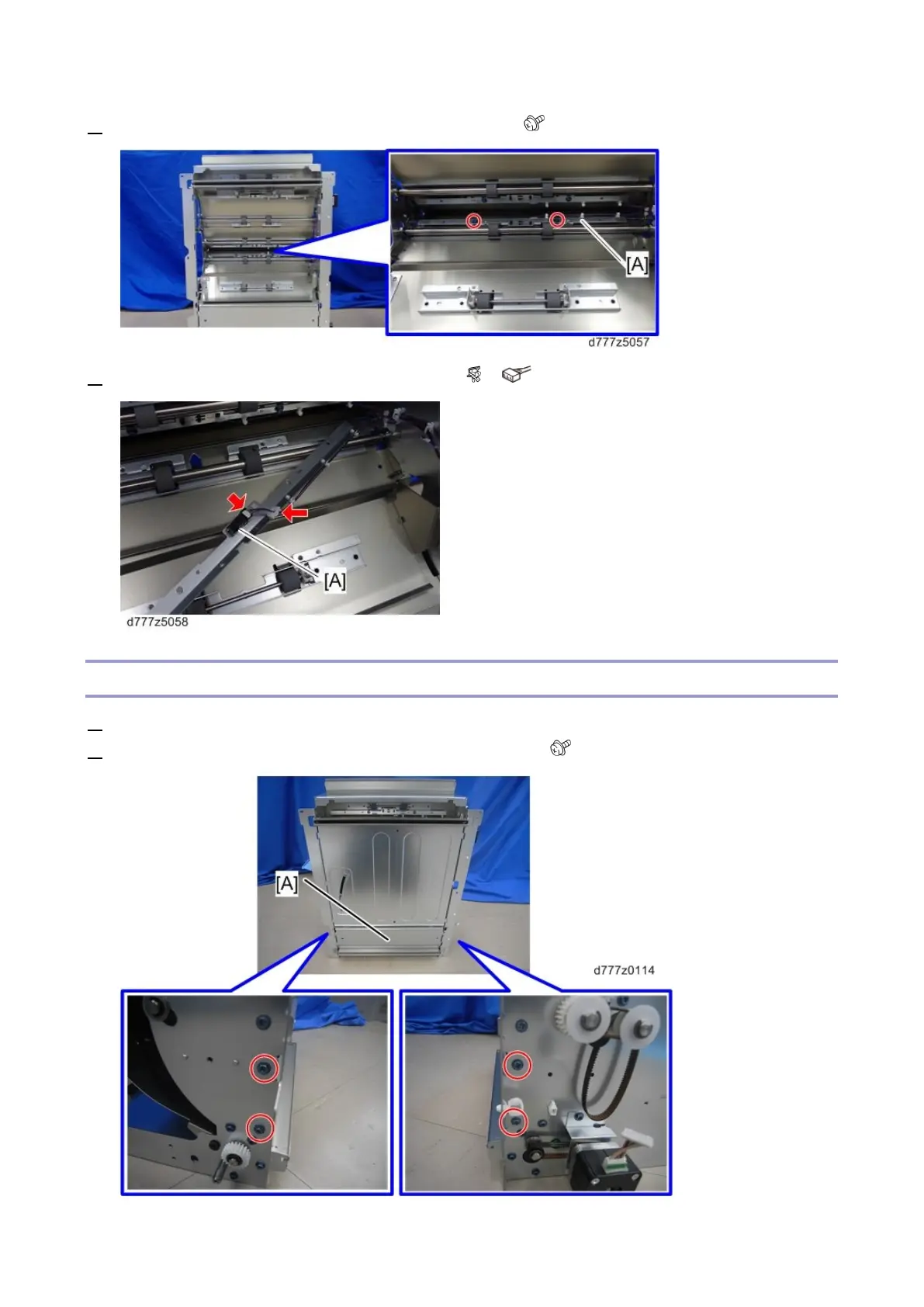 2. Remove the lower cover from the vertical transport unit [A] ( x4).