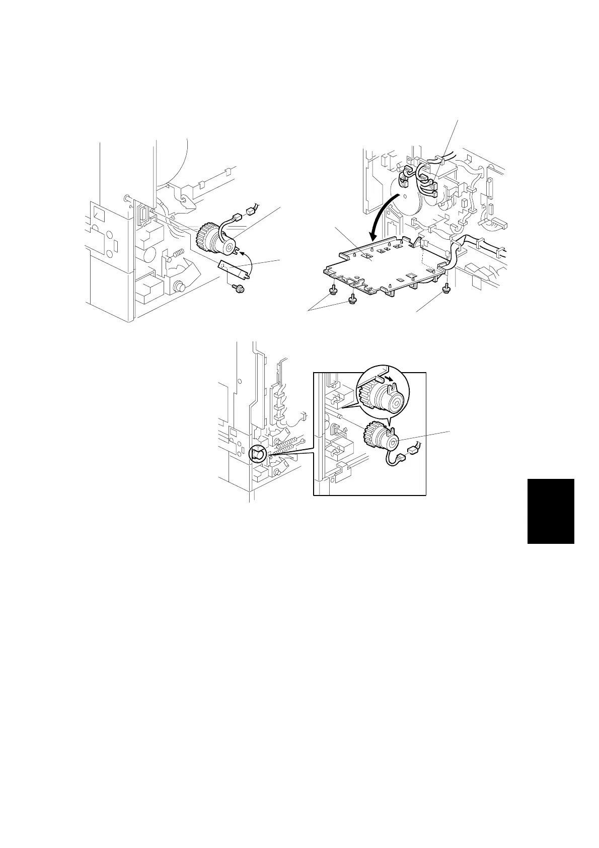 7. Replace the upper paper feed clutch [F] (1 connector).