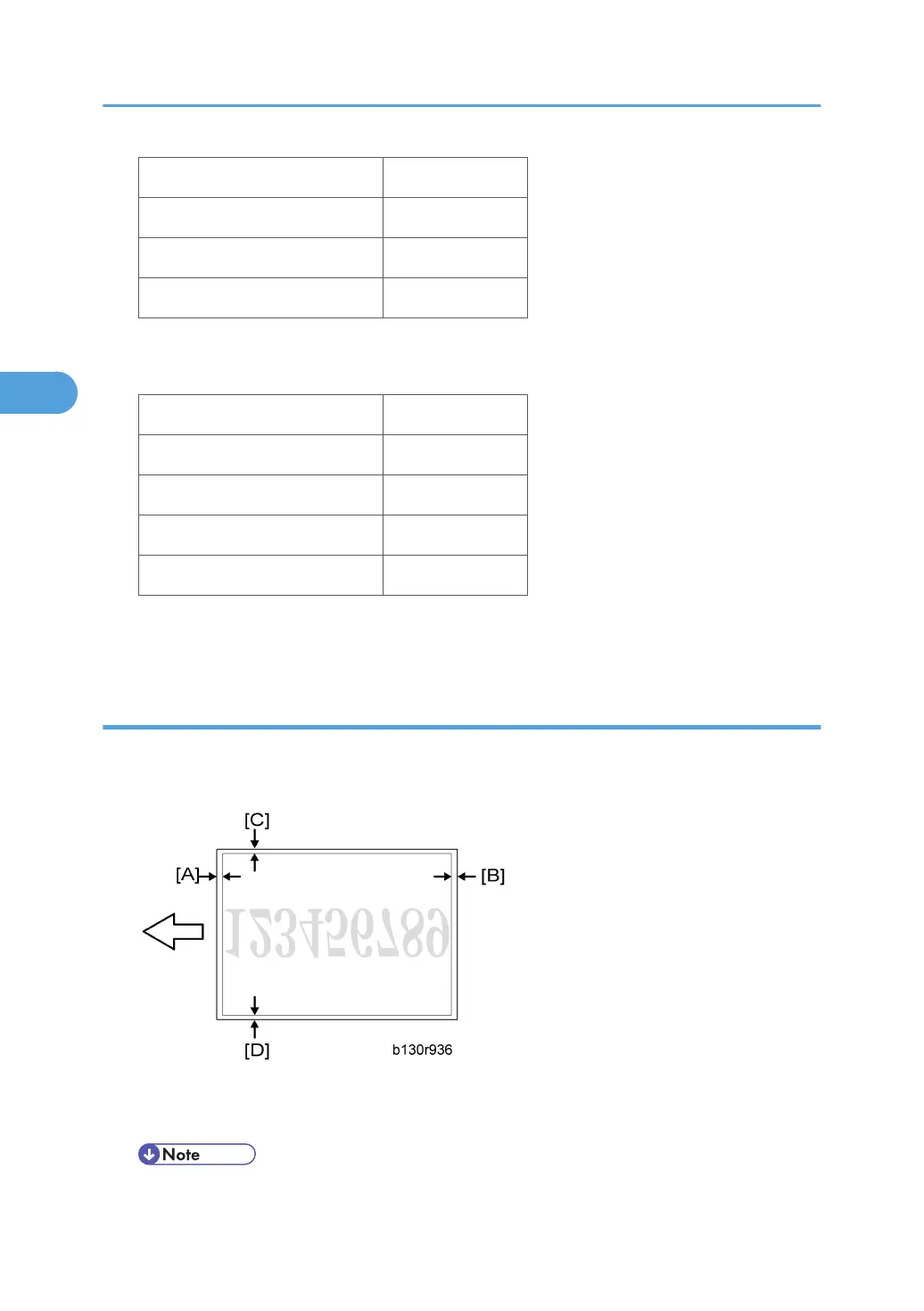 6. Measure the distance between the side edge of the image area and the side edge of the paper [B].