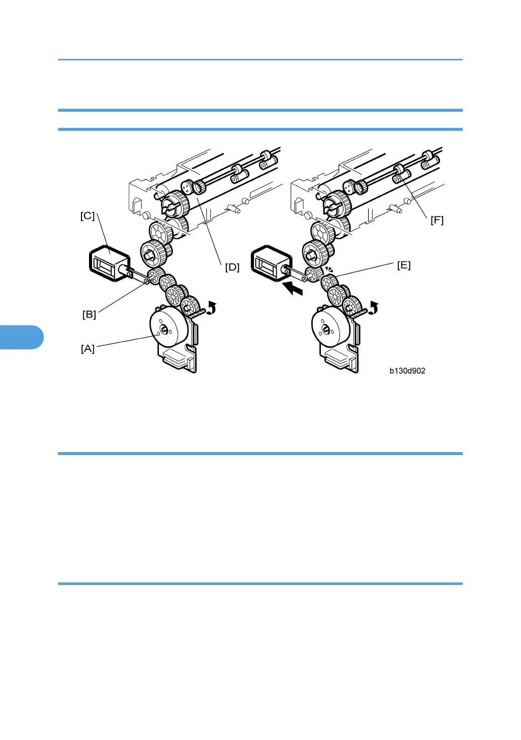 The main motor [A] drives the hot roller [D] through a gear train. One of the gears in the gear train is the