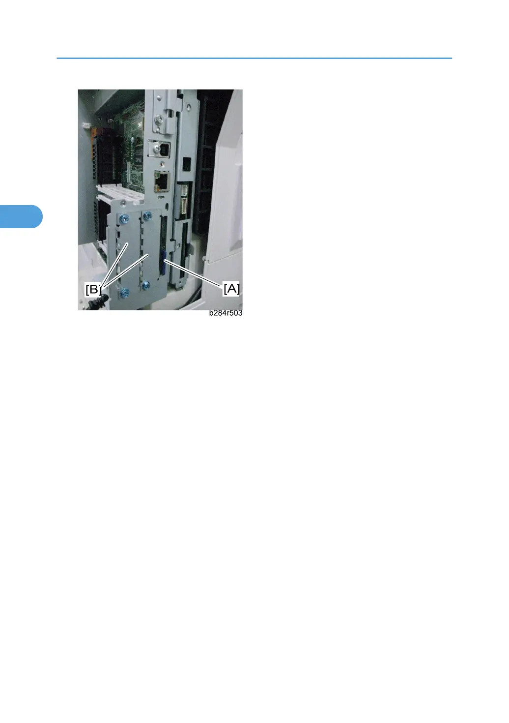 4. Remove the two I/F covers [B] (or I/F options if they have been installed) ( x 2 each).