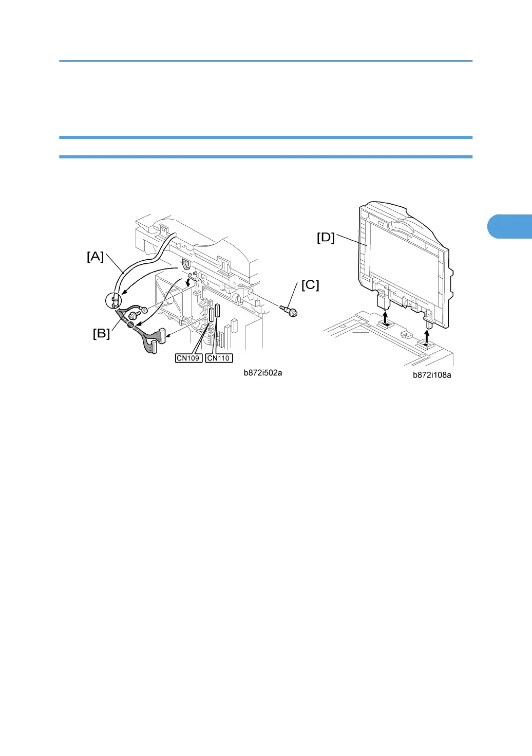 2. Remove the DF interface cables [A] ( x 2, hook x 2).
