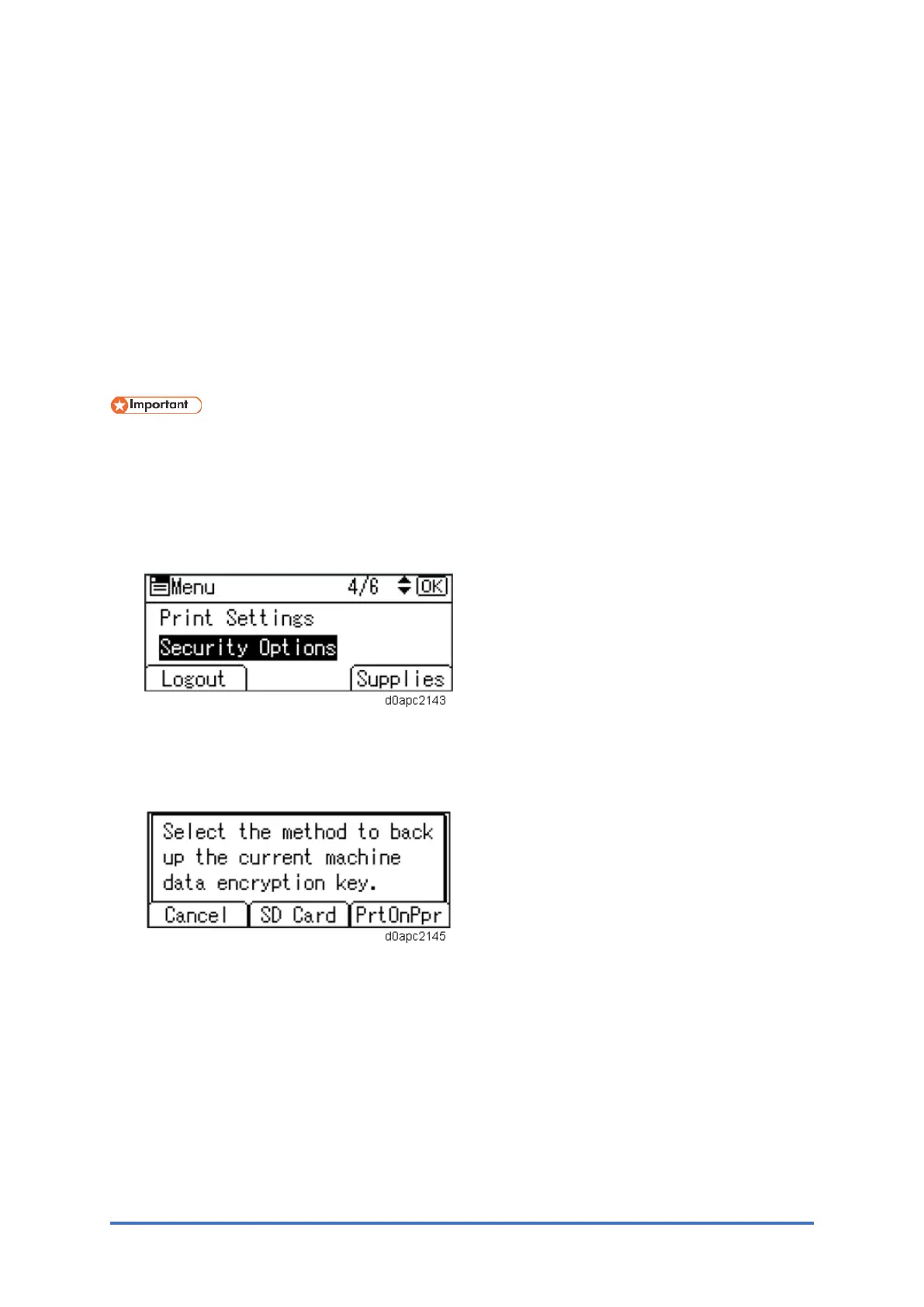 machine and press the [OK] key to back up the machine's data encryption key.