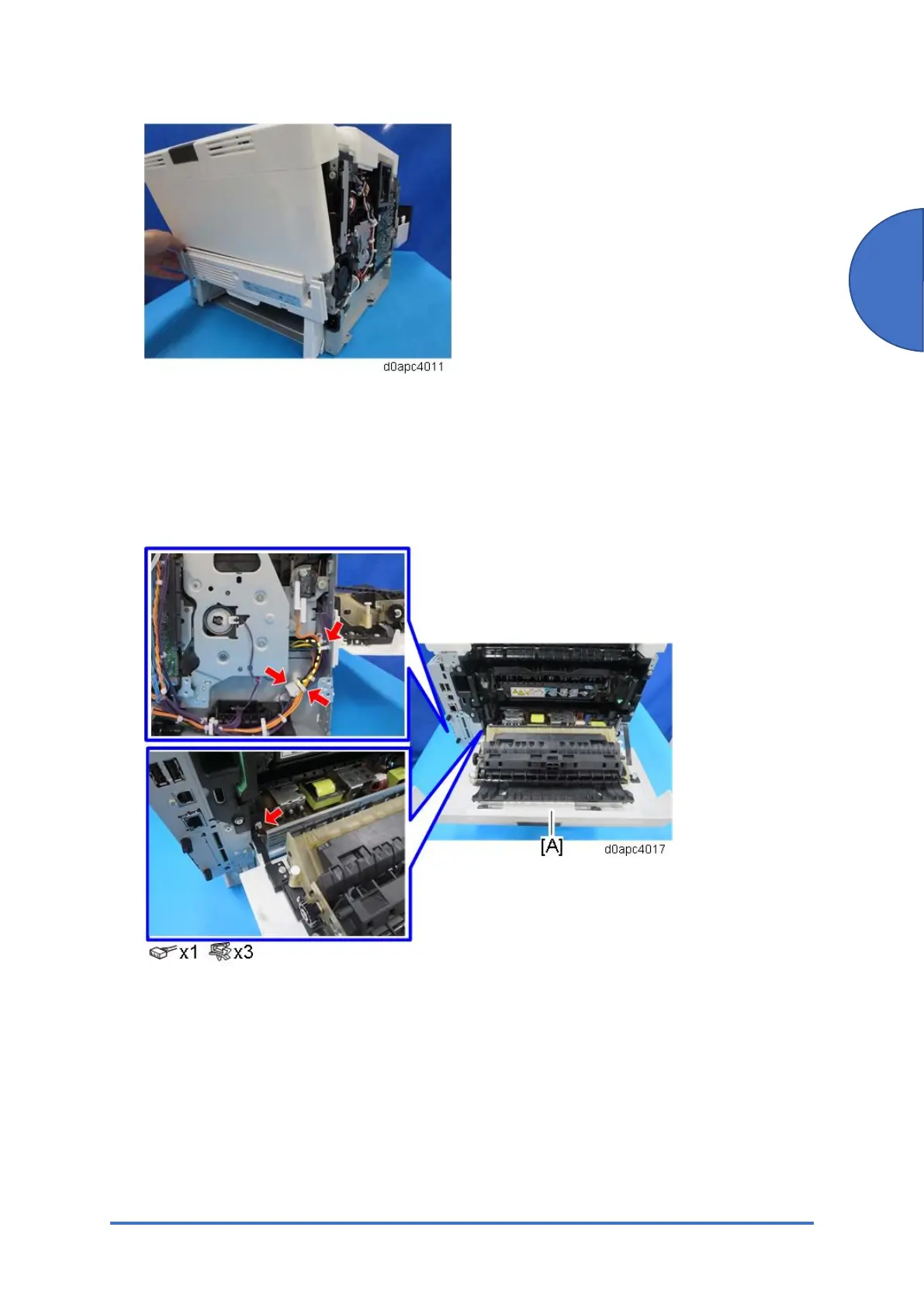1. Remove the rear lower cover. (Rear Lower Cover (Printer))