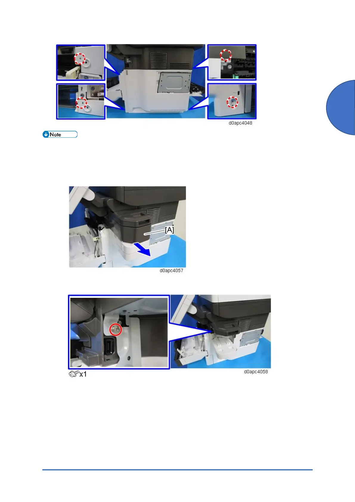 cover in step 4. Do not remove the stapler unit cradle attached to the right cover with