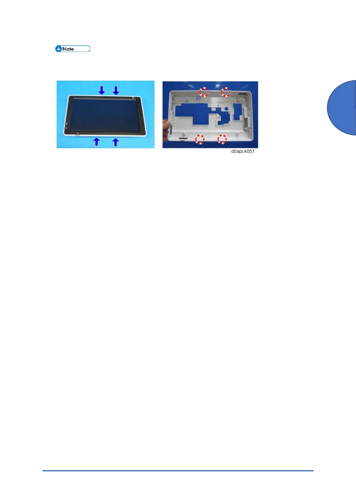 There are four hooks inside the operation panel unit. Before removing it, check the photos